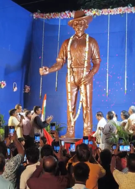 মেদিনীপুর শহরে দেশপ্রেম ও আত্মত্যাগের এক গর্বের মুহূর্তের সাক্ষী থাকল সাধারণ মানুষ। বীর বিপ্লবী শহীদ-এ-আজম Bhagat Singh-এর আত্মবলিদান দিবস উপলক্ষে মেদিনীপুর শহরে গড়ে উঠল তাঁর ১৫ ফুট উচ্চতার পূর্ণাবয়ব মূর্তি।