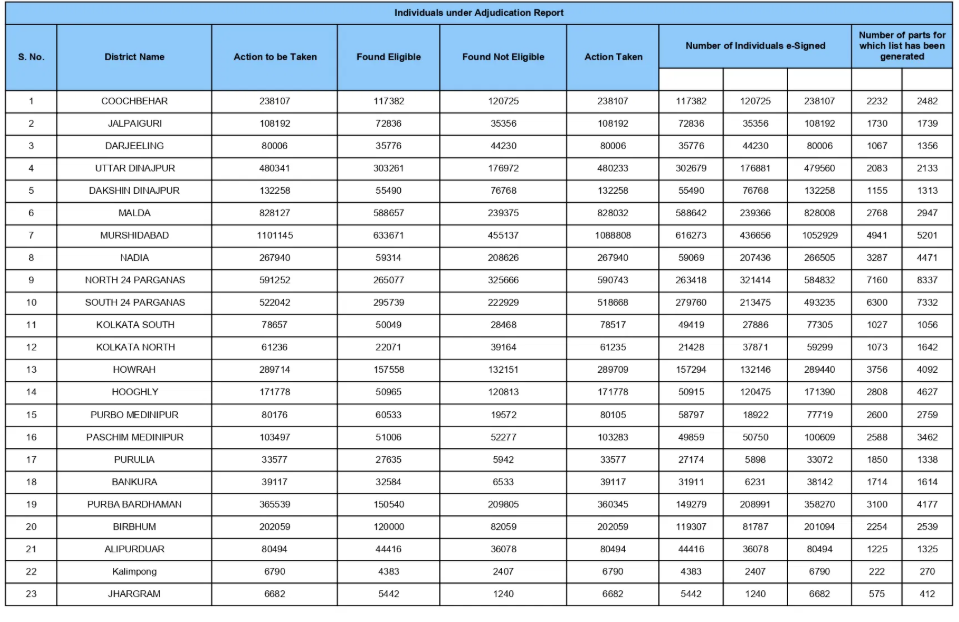 - সবচেয়ে বেশি বাদ: মুর্শিদাবাদ (৪.৫৫ লাখ)