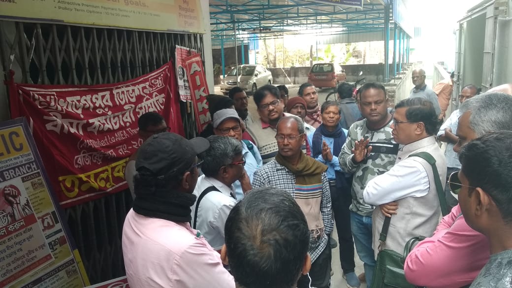 নারায়ণ চন্দ্র নায়ক,পূর্ব মেদিনীপুর: শ্রমিক স্বার্থবিরোধী চারটি শ্রমকোড বাতিল, লাগামছাড়া মূল্যবৃদ্ধি নিয়ন্ত্রণ, রাষ্ট্রায়ত্ত সংস্থার বেসরকারীকরণ বন্ধ এবং ১০০ দিনের কাজ চালুর দাবিতে দেশজুড়ে সাধারণ ধর্মঘটের ডাক দেয় ১০টি কেন্দ্রীয় ট্রেড ইউনিয়ন। রাজ্যে পরীক্ষার কারণে সাধারণ ধর্মঘটের পরিবর্তে শিল্প ধর্মঘট পালিত হয়। সেই কর্মসূচির সমর্থনে পূর্ব মেদিনীপুর জেলার বিভিন্ন প্রান্তে পিকেটিং ও বিক্ষোভ মিছিল সংগঠিত করল শ্রমিক সংগঠন AIUTUC। ধর্মঘটের সমর্থনে কৃষক বিরোধী নীতির প্রতিবাদ জানিয়ে রাস্তায় নামে সর্বভারতীয় কৃষক সংগঠন অল ইন্ডিয়া কিষান ক্ষেতমজদুর সংগঠন (AIKKMS)-এর কর্মীরাও। তমলুক শহরের মানিকতলা মোড় থেকে মিছিল শুরু হয়ে শহরের বিভিন্ন গুরুত্বপূর্ণ রাস্তা পরিক্রমা করে। মিছিলে নেতৃত্ব দেন AIUTUC-এর রাজ্য সম্পাদকমণ্ডলীর সদস্য জ্ঞানানন্দ রায়, সঞ্জয় জানা এবং AIKKMS-এর জেলা নেতৃত্ব প্রবীর প্রধানসহ অন্যান্যরা। ধর্মঘটের প্রভাব পড়ে তমলুকের ব্যাংকিং পরিষেবায়—শহরের প্রায় সমস্ত ব্যাংক বন্ধ ছিল। এলআইসি-র তমলুক শাখায় বিভিন্ন কর্মচারী সংগঠনের পিকেটিং ঘিরে পুলিশের সঙ্গে বচসার ঘটনাও ঘটে।