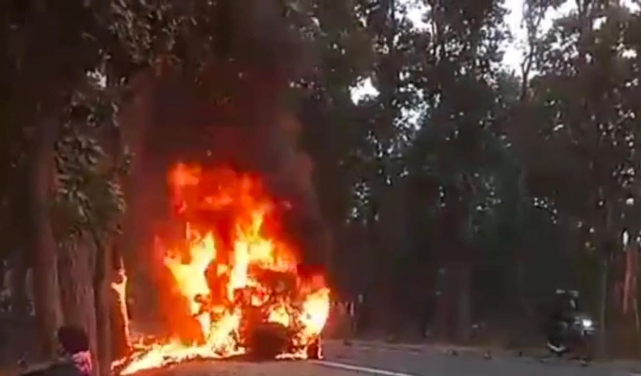 পশ্চিম মেদিনীপুর সেখ ওয়ারেশ আলী : শালবনীর ভাদুতলা সংলগ্ন বুড়িশোলের জঙ্গলে যাত্রীবাহী বাসের সঙ্গে মুখোমুখি সংঘর্ষে পুড়ে ছাই প্রাইভেট গাড়ি! ঘটনায় মৃত ২ সোমবার বিকেল সাড়ে ৪টা নাগাদ পশ্চিম মেদিনীপুরের ভাদুতলা সংলগ্ন বুড়িশোলের জঙ্গলে ভয়াবহ পথ দুর্ঘটনায় ঘটনায় মৃত দুই। একটি পিড়াকাটাগামী যাত্রীবাহী বাসের সঙ্গে মেদিনীপুরগামী প্রাইভেট কারের মুখোমুখি সংঘর্ষে আগুন লেগে যায় ওই ব্যক্তিগত চারচাকা বা প্রাইভেট কারটিতে। আর তাতেই কয়েক মিনিটের মধ্যে পুড়ে ছাই হয়ে যায় ওই গাড়িটি! গাড়ির মধ্যে থাকা দুজনেরই মৃত্যু হয়েছে বলে পুলিশের প্রাথমিক অনুমান। তবে, বাসের চালকের তৎপরতায় বাসের মধ্যে থাকা যাত্রীদের কম-বেশি চোট লাগলেও, বড় আঘাত লাগেনি বলেই পুলিশ ও প্রত্যক্ষদর্শীদের মারফত প্রাথমিকভাবে জানা গেছে। তবে, চালক সহ ওই ব্যক্তিগত চার চাকার মধ্যে থাকা দুই যাত্রীর মৃত্যু হয়েছে বলে পুলিশ ও স্থানীয়দের প্রাথমিক অনুমান।