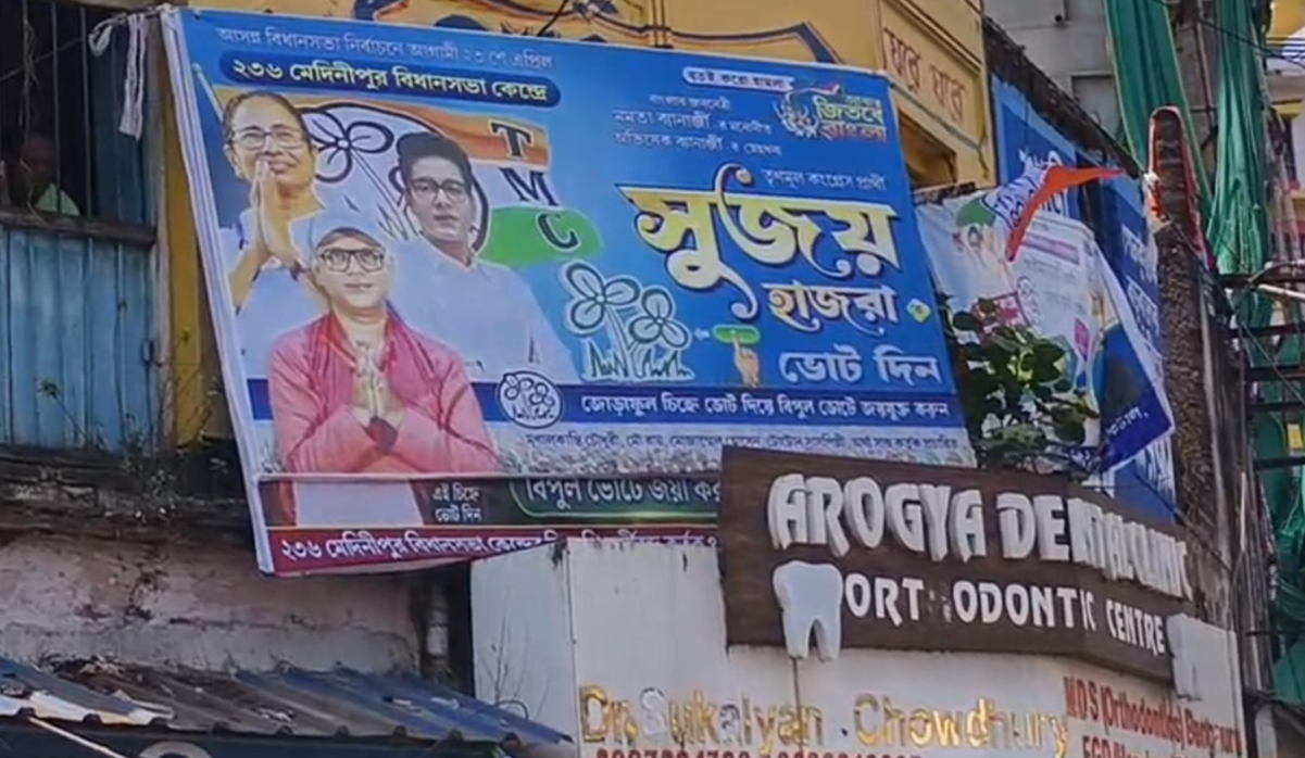 অবিলম্বে বিতর্কিত ব্যানার সরানোর দাবি জানিয়ে নির্বাচন কমিশনের দ্বারস্থ হন শঙ্কর গুছাইত। ঘটনাকে কেন্দ্র করে এলাকায় বাড়তি উত্তেজনা ছড়ায় এবং কিছু সময়ের জন্য যান চলাচলও ব্যাহত হয়।উল্লেখযোগ্যভাবে, শুক্রবার বিকেলে মেদিনীপুর শহরে কলেজ ময়দান থেকে মুখ্যমন্ত্রী মমতা বন্দ্যোপাধ্যায়ের একটি বড় রোড শো হওয়ার কথা রয়েছে।