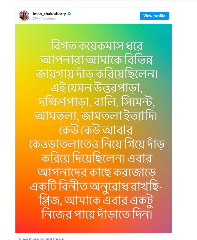 এরপরই সোশ্যাল মিডিয়ায় নিজের অবস্থান স্পষ্ট করেন তিনি।একটি ব্যঙ্গাত্মক পোস্টে ইমন লেখেন, “গত কয়েক মাস ধরে আপনারা আমাকে নানা জায়গায় দাঁড় করিয়েছেন—উত্তরপাড়া, দক্ষিণপাড়া, বালি, সিমেন্ট, আমতলা, জামতলা—এমনকি কেওড়াতলাতেও! এবার হাতজোড় করে অনুরোধ, প্লিজ আমাকে নিজের পায়ে দাঁড়াতে দিন।”মুখ্যমন্ত্রী মমতা বন্দ্যোপাধ্যায়-এর সঙ্গে ইমনের সম্পর্ক দীর্ঘদিনের এবং অত্যন্ত আন্তরিক। গায়িকা নিজেই বহুবার জানিয়েছেন, ‘দিদি’ তাঁর কাছে মাতৃসমা। যদিও রাজনীতিতে সক্রিয় না হলেও তাঁর প্রতি শ্রদ্ধা অটুট।সম্প্রতি সোশ্যাল মিডিয়ায় নেতিবাচক মন্তব্যে মানসিকভাবে আঘাত পেয়ে কিছুটা বিরতি নেওয়ার কথাও ভেবেছিলেন ইমন। তবে জানা গেছে, মমতা বন্দ্যোপাধ্যায়ের পরামর্শ ও আশ্বাসেই তিনি আবার স্বাভাবিক ছন্দে ফিরছেন। নেতিবাচকতা এড়িয়ে নিজের কাজে মন দেওয়ার বার্তাই দিয়েছেন মুখ্যমন্ত্রী।সব মিলিয়ে, রাজনৈতিক ময়দান থেকে আপাতত দূরেই থাকছেন ইমন চক্রবর্তী। স্পষ্ট জানিয়ে দিয়েছেন, এই নির্বাচনে তাঁকে প্রার্থী হিসেবে দেখা যাবে না। আপাতত সঙ্গীত এবং ব্যক্তিগত জীবনই তাঁর একমাত্র অগ্রাধিকার।