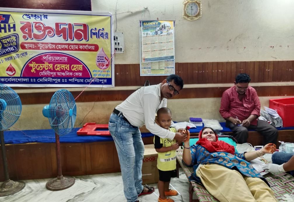 পশ্চিম মেদিনীপুর নিজস্ব প্রতিবেদন : শনিবার স্টুডেন্টস হেলথ হোম মেদিনীপুর আঞ্চলিক কেন্দ্রের উদ্যোগে, স্টুডেন্টস হেলথ হোম কার্যালয়ে একটি রক্তদান শিবির অনুষ্ঠিত হয়। শিবিরের উদ্বোধন করেন হোমের কার্যকরী সভাপতি ডাক্তার সুহাস রঞ্জন মণ্ডল। শিবিরে মোট ২৮ জন রক্তদান করেন। এঁদের মধ্যে ৬ জন মহিলা ও ২২ জন পুরুষ।
