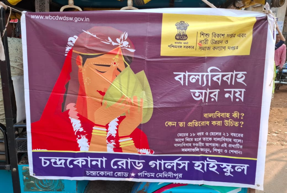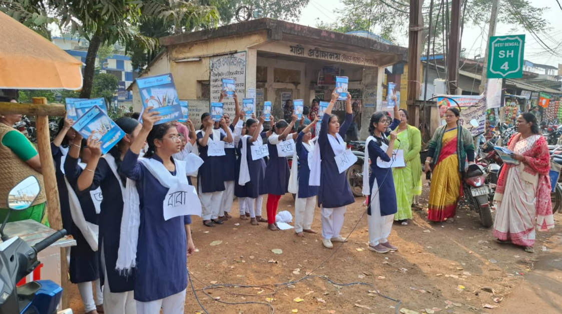 শিক্ষিকাদের তত্ত্বাবধানে আয়োজিত এই পথনাটিকার মাধ্যমে কিশোরী বয়সে পড়াশোনা চালিয়ে যাওয়ার গুরুত্ব এবং আইনের দৃষ্টিতে বাল্যবিবাহ যে দণ্ডনীয় অপরাধ—সেই বার্তাও স্পষ্টভাবে তুলে ধরা হয়।এই উদ্যোগের মাধ্যমে চন্দ্রকোনা রোড গার্লস হাইস্কুলের ছাত্রীরা সমাজকে জানিয়ে দিল—বাল্যবিবাহ নয়, চাই নিরাপদ ও শিক্ষিত ভবিষ্যৎ।