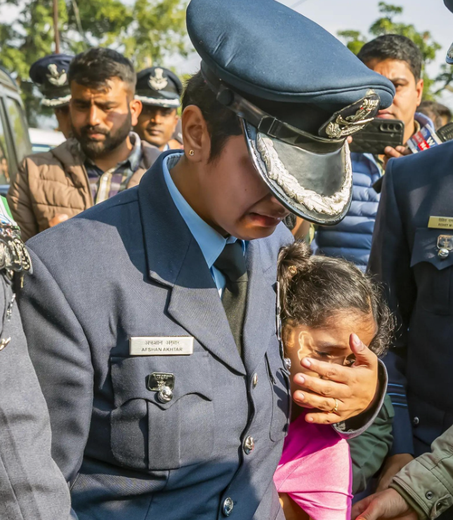 ভয়াবহ এই দুর্ঘটনায় মৃত্যু হয় পাইলটের। দুবাই এয়ার শো চলাকালীন শহীদ পাইলটের মৃতদেহ রবিবার হিমাচল প্রদেশের কাংড়ায় তাঁর পৈতৃক গ্রাম পাতিয়ালকারে আনা হয়। রবিবার সেখানেই উইং কমান্ডার আফশান তাঁর পরিবারের সদস্যদের সঙ্গে স্বামী উইং কমান্ডার নমনশ সায়লকে শেষ শ্রদ্ধা জানান।