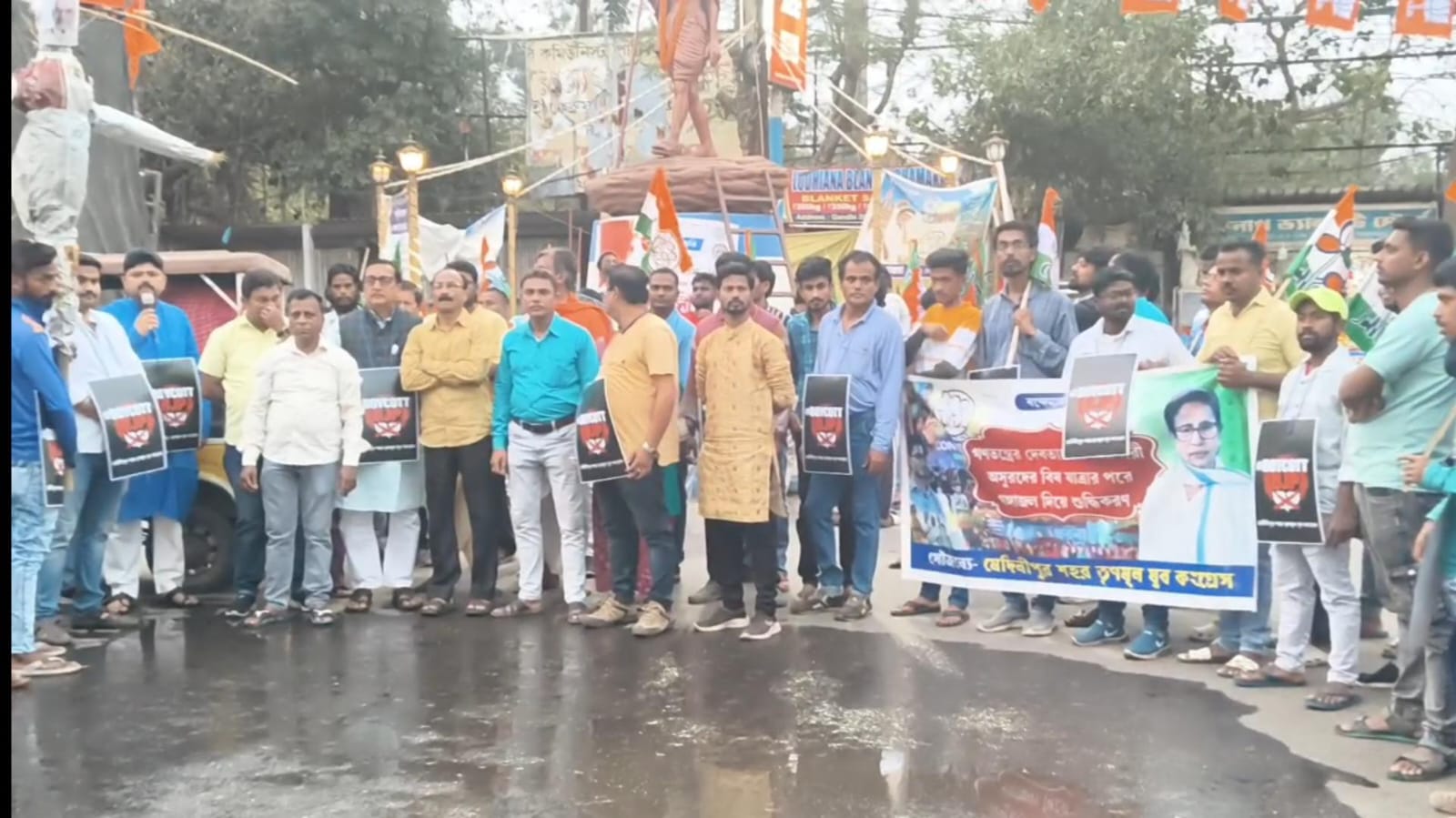পশ্চিম মেদিনীপুর, সেখ ওয়ারেশ আলী : বিজেপির ‘পরিবর্তন সংকল্প রথ যাত্রা’কে কেন্দ্র করে মেদিনীপুরে পাল্টা কর্মসূচি নিল তৃণমূল যুব কংগ্রেস। বিজেপির রথ যাত্রার পর গঙ্গাজল ছিটিয়ে ‘শুদ্ধিকরণ’ কর্মসূচি পালন করে যুব তৃণমূল। তাঁদের অভিযোগ, এসআইআর (SIR)-এর নামে গণতন্ত্রের উপর আঘাত করা হচ্ছে এবং প্রকৃত ভোটারদের নাম বাদ দেওয়ার চেষ্টা চলছে। যুব তৃণমূল কংগ্রেসের দাবি, বিজেপির এই যাত্রা আসলে “গণতন্ত্রবিরোধী বিষ যাত্রা”। সেই কারণেই যেসব রাস্তা দিয়ে বিজেপির রথ যাত্রা গিয়েছে, সে সব পথে গঙ্গাজল ছিটিয়ে ঝাঁট দিয়ে প্রতীকী শুদ্ধিকরণ করা হয়। এদিন যুব তৃণমূল কংগ্রেসের নেতৃত্ব এবং কর্মী-সমর্থকেরা এই কর্মসূচিতে অংশ নেন। কর্মসূচি চলাকালীন কেন্দ্রীয় স্বরাষ্ট্রমন্ত্রীর বিরুদ্ধে প্রতীকী প্রতিবাদ জানিয়ে কুশপুতুল দাহও করা হয় বলে দাবি সংগঠনের।