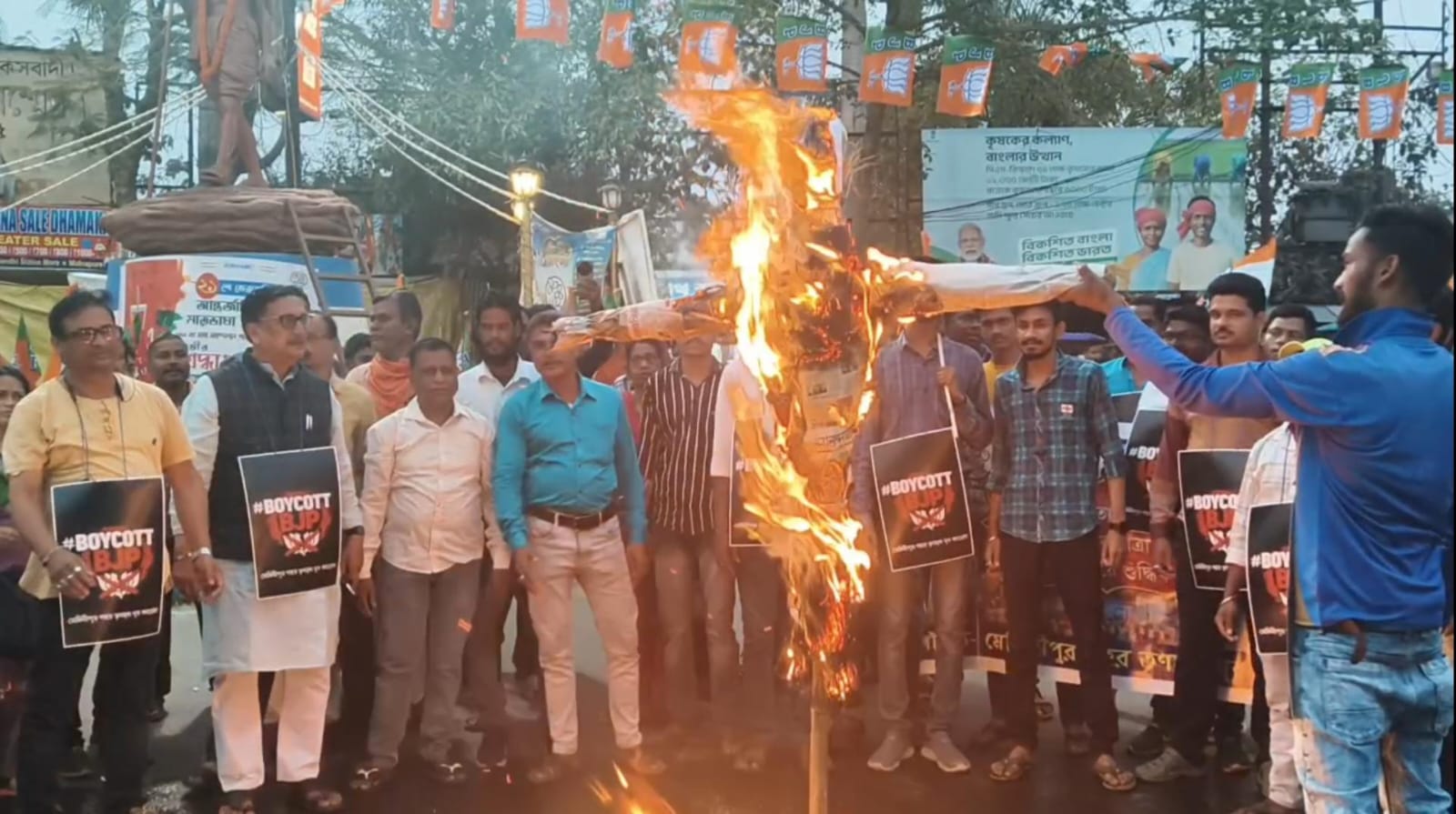 তিনি আরও বলেন, “যে রাস্তা দিয়ে বিজেপির এই বিষ রথ যাত্রা গিয়েছে, সেই পথেই আমরা গঙ্গাজল ছিটিয়ে শুদ্ধিকরণ করেছি। পাশাপাশি কেন্দ্রীয় স্বরাষ্ট্রমন্ত্রীর বিরুদ্ধে প্রতীকী প্রতিবাদ জানিয়ে তাঁর কুশপুতুল দাহ করা হয়েছে।” এদিনের কর্মসূচিতে উপস্থিত ছিলেন যুব তৃণমূল কংগ্রেসের সভাপতি নির্মাল্য চক্রবর্তী, মেদিনীপুর পৌরসভার পৌরপিতা সৌমেন খান, যুব নেতা-কর্মী সহ বহু কর্মী-সমর্থক। এই ঘটনাকে ঘিরে মেদিনীপুরের রাজনৈতিক মহলে নতুন করে বিতর্কের সৃষ্টি হয়েছে। একদিকে বিজেপির পরিবর্তন সংকল্প রথ যাত্রা, অন্যদিকে তৃণমূলের শুদ্ধিকরণ কর্মসূচি—সব মিলিয়ে জেলাজুড়ে রাজনৈতিক উত্তাপ আরও বাড়ছে বলেই মনে করছে রাজনৈতিক মহল।