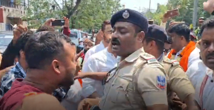 মুহূর্তের মধ্যে দুই পক্ষের স্লোগানযুদ্ধ ঘিরে এলাকায় উত্তেজনা ছড়িয়ে পড়ে।পরিস্থিতি দ্রুত নিয়ন্ত্রণের বাইরে চলে যেতে থাকলে পুলিশ হস্তক্ষেপ করে। সেই সময় বিজেপি কর্মীদের সঙ্গে পুলিশের ধাক্কাধাক্কির ঘটনাও ঘটে বলে অভিযোগ। অভিযোগ আরও, পরিস্থিতি সামাল দিতে গেলে দুর্গাপুর থানার ভারপ্রাপ্ত আধিকারিক সঞ্জীব দে-কে ধাক্কা দিয়ে সরিয়ে দেন বিজেপি কর্মীদের একাংশ। যদিও এই অভিযোগ নিয়ে প্রশাসনের তরফে আনুষ্ঠানিকভাবে কিছু জানানো হয়নি।