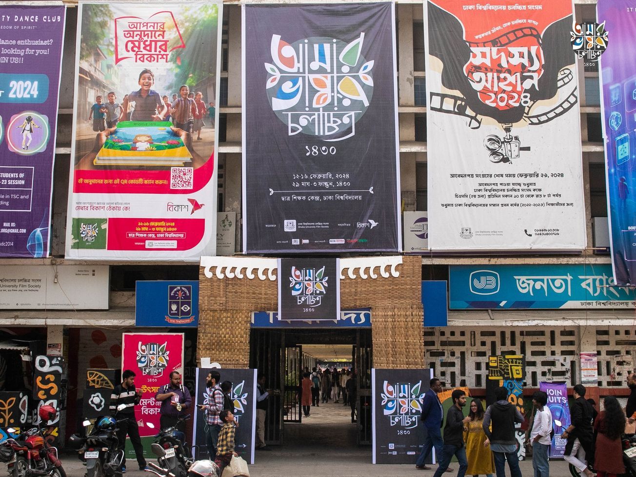নিজস্ব সংবাদদাতা : সন্তের দুপুরে মন যখন বিহুর নেশায় রঙিন, তখন তা আরো রাঙিয়ে দিতে ঢোলের বাদ্য বাজিয়ে কাগজে বানানো মাইক নিয়ে গলা ছেড়ে হাঁকডাক করছে একদল তরুণ-তরুণী। আশেপাশের মানুষ কৌতূহলী দৃষ্টিতে তাকিয়ে আছে। এ যুগেও ৫০ টাকায় সিনেমা দেখা যায়! তা-ও আবার সদ্য মুক্তিপ্রাপ্ত থেকে শুরু করে একদম ধ্রুপদি চলচ্চিত্র। যায় বইকি, খুব যায়! আমাদের বাঙালির সিনেমা দেখার প্রকৃত আমেজ কী বলুন তো? নতুন সিনেমা এসেছে, পুরো শহর-গ্রাম ছেয়ে আছে পোস্টারে। মায়ের বকুনি থেকে বাঁচতে রাজ্যের দুরূহ পরিকল্পনা সেরে, টিফিনের টাকা বাঁচানো কোনো স্কুল-কলেজ পড়ুয়া, এলোমেলো বন্ধুরা, লুকিয়ে বাঁচিয়ে প্রেম করা কপোত-কপোতি, গ্রামের বয়স্ক বৃদ্ধ, খেটে খাওয়া মানুষ কিংবা সপ্তাহান্তে বা মাসে একবার পরিবারের সবাই মিলে ম্যাটিনি শো দেখা—একসময় চলচ্চিত্র সবার ছিল, মানুষের ছিল। মাঘ-ফাল্গুনের হাওয়ায় নতুন দিনে চলচ্চিত্রের আমাদের চিরপরিচিত সেই পুরোনো প্রিয় সুর ও ঘ্রাণ ফিরে আসে যেন 'আমার ভাষার চলচ্চিত্র' আয়োজনের মধ্য দিয়ে।চারিদিকে পুরোনো দিনের চলচ্চিত্রের পোস্টার, পুরোনো গান, উৎসুক দর্শকের টিকিট কাউন্টারে টিকিটের অপেক্ষা, ঠেলাঠেলি করে লাইনে দাঁড়িয়ে সিনেমা দেখা—আমার ভাষার চলচ্চিত্র যেন প্রকৃত অর্থেই বাঙালির চলচ্চিত্রের উৎসব। গত ২২ বছর ধরে বাংলা চলচ্চিত্রকে ভালোবাসার চিরকুট দিয়ে যাচ্ছে এ চলচ্চিত্র উৎসব। আজ গল্পের আসর জমবে এ আয়োজনের গল্পকে ঘিরেই।প্রতি বছর ভাষার মাস ফেব্রুয়ারিতে 'আমার ভাষার চলচ্চিত্র' উপলক্ষে ঢাকা বিশ্ববিদ্যালয়ের টিএসসি সেজে ওঠে চলচ্চিত্রের ঢংয়ে। 'বেহুলা' থেকে 'রূপবান', 'বারুদ' থেকে 'অঙ্গার'—যেদিকে চোখ যায়, বাংলা চলচ্চিত্রের সোনালি সময়ের সাক্ষ্য দেয় নানান পোস্টার।