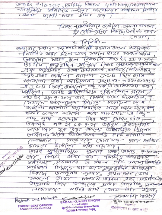 স্থানীয় স্তরে খবর স্থানীয় বিট অফিসার প্রশান্ত দাস মহন্ত ৫০ হাজার টাকার বিনিময়ে বিষয়টি মিটিয়ে নিয়েছেন তাই তিনি কোন ব্যবস্থা নিতে রাজি হয়নি। যদিও এই বিষয়ে কোনো প্রমাণ না থাকায় কেউ মুখ খুলতে রাজী হয়নি। কিন্তু এই খবরটা বিদ্যুৎ বেগে স্থানীয় এলাকায় ছড়িয়ে পড়লে স্থানীয় বন ও ভুমি কর্মাধ্যক্ষ পবন সাউ থেকে শুরু করে অঞ্চল সভাপতি, মুজিবুর রহমান মন্ডল এর বিরোধিতা করে স্থানীয় স্তরে একটি মীমাংসা করে উক্ত দোষী ব্যক্তিকে চিহ্নিত করে একটি মীমাংসা নামা তৈরি করেন। তাতে স্পষ্ট জানিয়ে দেন।