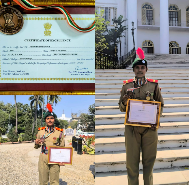 সর্বভারতীয় স্তরে সেই সাফল্যের নিরিখেই তাঁকে এই মর্যাদাপূর্ণ সম্মানে ভূষিত করা হয়েছে।ঘাটাল কলেজের অ্যাসোসিয়েট এনসিসি অফিসার লেফটেন্যান্ট কৌশিক প্রামাণিক জানান, পায়েলের এই অর্জন শুধু ব্যক্তিগত নয়, কলেজ ও জেলার গর্ব। তাঁর এই সাফল্যে পরিবার, শিক্ষক-শিক্ষিকা ও সহপাঠীদের মধ্যেও উচ্ছ্বাস লক্ষ্য করা গিয়েছে।
