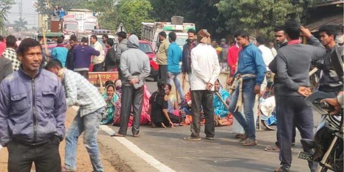 পশ্চিম মেদিনীপুর নিজস্ব সংবাদদাতা : পশ্চিম মেদিনীপুর জেলার গড়বেতা থানার ধাদিকা এলাকায় প্রায় ২৫ টি হাতির দলের তান্ডবে ক্ষতিগ্রস্ত হয়েছে বিঘার পর বিঘা জমির আলু চাষ। তাই গ্রামবাসিরা বলেন বন দফতর বছরের বেশিরভাগ সময় একই রুটে হাতিগুলো ড্রাইভ করে নিয়ে যায় জমির ওপর দিয়ে ফলে নাজেহাল হচ্ছেন সাধারণ মানুষ, ক্ষতি হচ্ছে ফসলের। কিন্তু সঠিকভাবে ক্ষতিপূরণ দেওয়া হয়নি। তাই ওই হাতির দলকে অন্যত্র সরানোর দাবিতে এবং ফসলের প্রকৃত ক্ষতিপূরণ দেওয়ার দাবি জানিয়ে রবিবার বন দফতরের রূপনারায়ণ বিভাগের অন্তর্গত গড়বেতা রেঞ্জের অধীন ধাদিকা বিট অফিস ঘেরাও করে বিক্ষোভ দেখায় ওই এলাকার বাসিন্দারা।তারই ক্ষতিপূরণের দাবি নিয়ে এই দিন সকাল ১১ টা থেকে ৬০ নম্বর জাতীয় সড়ক অবরোধ করে বিক্ষোভ দেখাতে থাকে স্থানীয় চাষীরা। সেই সঙ্গে একই দাবিতে সামিল ৬০ নম্বর জাতীয় সড়ক অবরুদ্ধ করে বিক্ষোভ দেখায় এলাকাবাসীরা। যার ফলে এলাকায় তীব্র উত্তেজনা ছড়িয়ে পড়ে। ৬০ নম্বর জাতীয় সড়ক অবরোধ করে গ্রামবাসীরা বিক্ষোভ দেখানোর ফলে ৬০ নম্বর জাতীয় সড়কে সমস্ত যানবাহন চলাচল বন্ধ হয়ে যায়। যার ফলে সমস্যায় পড়ে নিত্যযাত্রীরা।