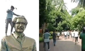 ঢাকা, জাকির হোসেন: কোটা সংস্কার আন্দোলনের মঞ্চ ‘বৈষম্যবিরোধী ছাত্র আন্দোলন’-এর ডাকা অসহযোগ আন্দোলনের প্রথম দিনেই রক্তাক্ত হল বাংলাদেশ। ইস্তফা দিয়েছেন বাংলাদেশের প্রধানমন্ত্রী শেখ হাসিনা ও দেশ ছেড়েছেন তিনি। অন্যদিকে সর্বশেষ পাওয়া খবর অনুযায়ী, শেখ হাসিনার বাসভবনে ঢুকে পড়েছেন লক্ষাধিক ক্ষিপ্ত জনতা। ধানমণ্ডিতে স্বরাষ্ট্রমন্ত্রী আসাদুজ্জামান খান কামালের বাড়িতেও হামলার অভিযোগ আন্দোলনকারীদের বিরুদ্ধে। বিক্ষোভে উত্তাল ঢাকায় বঙ্গবন্ধুর মূর্তির উপরে উঠে যান কয়েকজন বিক্ষোভকারী। বঙ্গবন্ধুর মূর্তি গুঁড়িয়ে দেওয়ার চেষ্টা চালাচ্ছে তারা। শয়ে শয়ে মানুষকে গেট টপকে প্রধানমন্ত্রীর বাসভবনে ঢুকতে দেখা যায়। উল্লাস করতে দেখা যায় তাদের। হাসিনার বিরুদ্ধে তাদের স্লোগান দিতে শোনা যায়। গণভবনের ভিতরে ঢুকে ভাঙচুর চালায় বিক্ষুব্ধ জনতা। ভাঙা হচ্ছে শেখ মুজিবর রহমানের মূর্তিও। সেনা প্রধান জনগণকে শান্তি বজায় রাখতে অনুরোধ করেছেন।