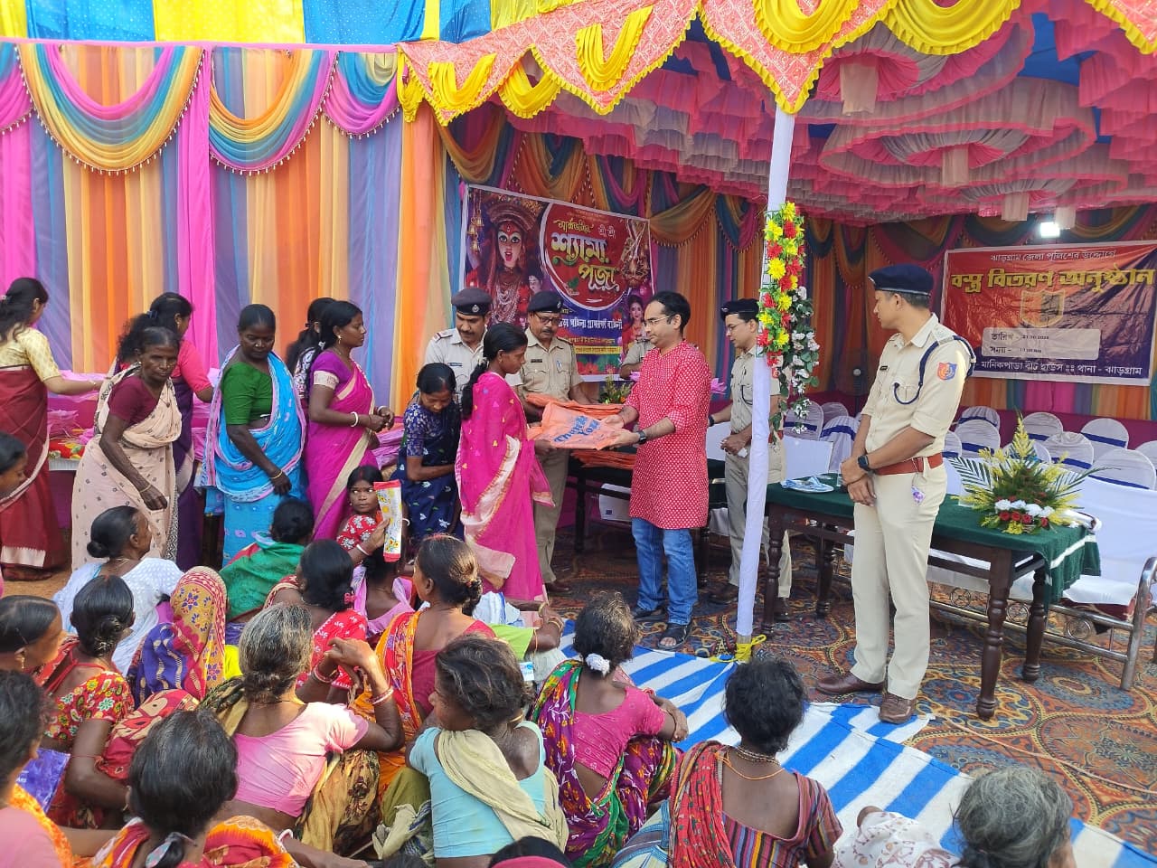 নিজস্ব সংবাদদাতা : উৎসবের মরসুমে আইন-শৃঙ্খলা রক্ষার পাশাপাশি পুলিশের সমাজসেবা মূলক কর্মসূচির মাধ্যমে সাধারণ মানুষের পাশে দাঁড়াতে এগিয়ে এলো ঝাড়গ্রাম জেলা পুলিশ ও মানিকপাড়া ফাঁড়ির পুলিশ প্রশাসন। মঙ্গলবার কালীপুজো উপলক্ষে বস্ত্র বিতরণ কর্মসূচির আয়োজন করা হয়। এদিন ঝাড়গ্রাম জেলার মানিকপাড়া ফাঁড়িতে ১৮০ জন দুঃস্থ মানুষের হাতে নতুন বস্ত্র তুলে দেন ঝাড়গ্রামের পুলিশ সুপার অরিজিৎ সিনহা। এছাড়াও উপস্থিত ছিলেন ঝাড়গ্রামের অতিরিক্ত পুলিশ সুপার (হেডকোয়ার্টার) সৈয়দ মহম্মদ মামদুল্লা হাসান, ঝাড়গ্রামের এসডিপিও সামীম বিশ্বাস, মানিকপাড়া ফাঁড়ির পুলিশ ইনচার্জ নিশীথ আদক সহ অন্যান্যরা। এদিন ঝাড়গ্রাম জেলা পুলিশ সুপার অরিজিৎ সিনহা জানান, সারা বছর ধরে বিভিন্ন সামাজিক দায়বদ্ধতার কর্মসূচি যেমন সহায় কর্মসূচি, দান অ্যাপ, দিশা কোচিং সেন্টার–এর মাধ্যমে জেলার সাধারণ মানুষকে পাশে থাকার চেষ্টা করে পুলিশ প্রশাসন। তিনি আরও বলেন, ঝাড়গ্রাম জেলার প্রতিটি থানার পক্ষ থেকেও কালীপুজো উপলক্ষে বস্ত্র বিতরণ কর্মসূচি পালন করা হবে। আলোর উৎসবকে কেন্দ্র করে নতুন বস্ত্র পেয়ে খুশির হাওয়া ছড়িয়ে পড়ে দুঃস্থ পরিবারগুলির মধ্যে। এছাড়াও কালীপুজো উপলক্ষে গোপীবল্লভপুর থানার উদ্যোগে থানা চত্বরে আয়োজিত হলো বস্ত্র বিতরণ অনুষ্ঠান। এদিন প্রায় ২৫০ জন দুঃস্থ মানুষের হাতে তুলে দেওয়া হয় বস্ত্র। পুজোর মরশুমে নতুন বস্ত্র পেয়ে খুশি এলাকার মানুষজন। বস্ত্র বিতরণ অনুষ্ঠানে উপস্থিত ছিলেন ঝাড়গ্রামের অতিরিক্ত পুলিশ সুপার (হেডকোয়ার্টার) সৈয়দ মহম্মদ মামদুল্লা হাসান, গোপীবল্লভপুরের এসডিপিও পারভেজ সরফরাজ,গোপীবল্লভপুর থানার আই.সি কার্তিক চন্দ্র রায় সহ অন্যান্য প্রশাসনের আধিকারিকরা।