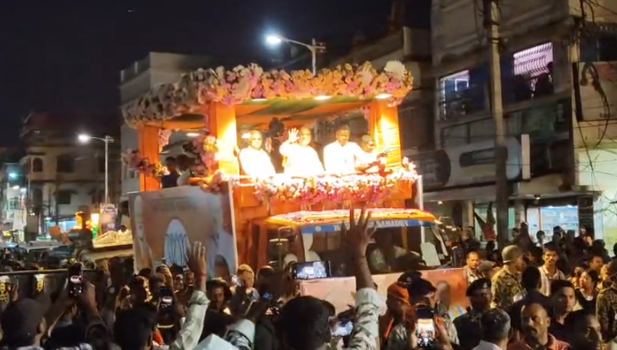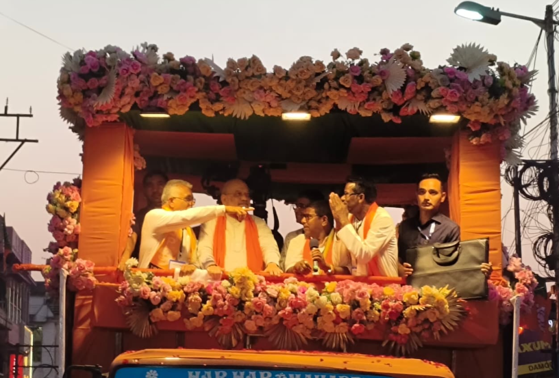 অরিন্দম চক্রবর্তী : খড়গপুর শহরে কেন্দ্রীয় স্বরাষ্ট্রমন্ত্রী Amit Shah-এর রোড শোকে ঘিরে ১০ এপ্রিল,শুক্রবার বিজেপি কর্মী-সমর্থকদের উন্মাদনা ছিল চোখে পড়ার মতো। ১০ এপ্রিল শুক্রবার খড়গপুর সদর বিধানসভার প্রার্থী Dilip Ghosh, মেদিনীপুর বিধানসভার প্রার্থী শংকর গুছাইত এবং খড়গপুর গ্রামীণ কেন্দ্রের প্রার্থী তপন ভূঁইয়ার সমর্থনে এই শক্তি প্রদর্শনের কর্মসূচি আয়োজন করা হয়।নির্ধারিত সময়ের কয়েক ঘণ্টা পরে, সন্ধ্যা প্রায় ছ’টা নাগাদ খোলা গাড়িতে উঠে জনতার উদ্দেশে হাত নাড়েন Amit Shah।