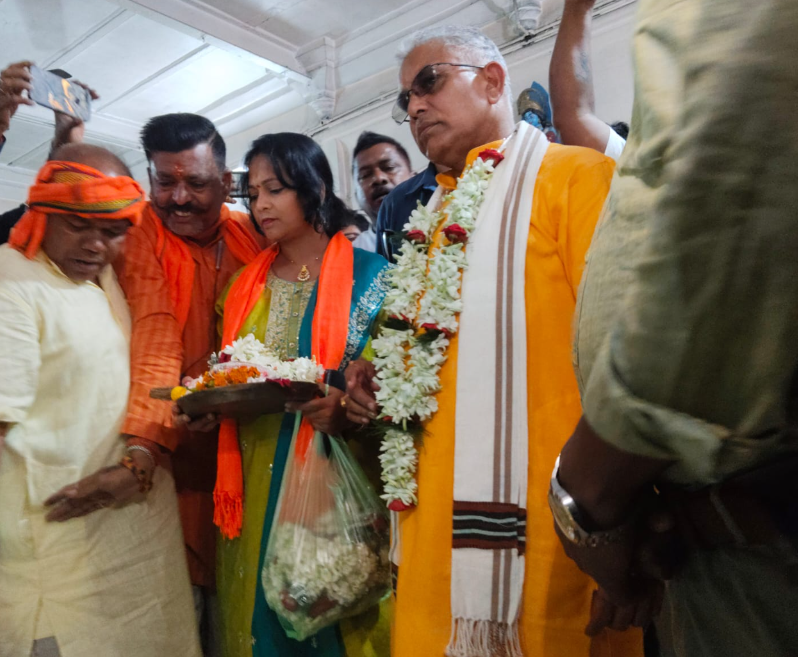 সেখান থেকে র্যালি এগিয়ে যায় গোলবাজারের রাম মন্দির-এ, যেখানে প্রার্থীকে নিয়ে যাওয়া হয় জোরালো শোভাযাত্রার মধ্য দিয়ে। এদিনও দেখা গেল পুরনো চেনা ছবি—নিজেই বুলেট চালিয়ে র্যালির নেতৃত্ব দেন দিলীপ ঘোষ।মন্দিরে পুজো দেওয়ার পর তিনি রওনা দেন খরিদা সোলাপুরী মাতা মন্দির-এর উদ্দেশ্যে। তবে এদিন তাঁর স্বভাবসিদ্ধ আক্রমণাত্মক ভঙ্গি খুব একটা চোখে পড়েনি।সাংবাদিকদের মুখোমুখি হয়ে সংক্ষিপ্ত প্রতিক্রিয়ায় তিনি শুধু বলেন, “এখানে জোরদার লড়াই হবে। বিজেপি এগিয়ে আছে, এগিয়েই থাকবে।”ভোটের আগে খড়গপুরে তাঁর এই শক্তি প্রদর্শন ঘিরে রাজনৈতিক মহলে শুরু হয়েছে নতুন করে জল্পনা।