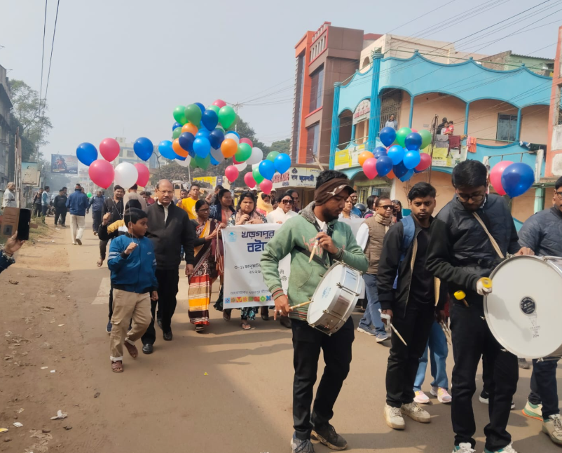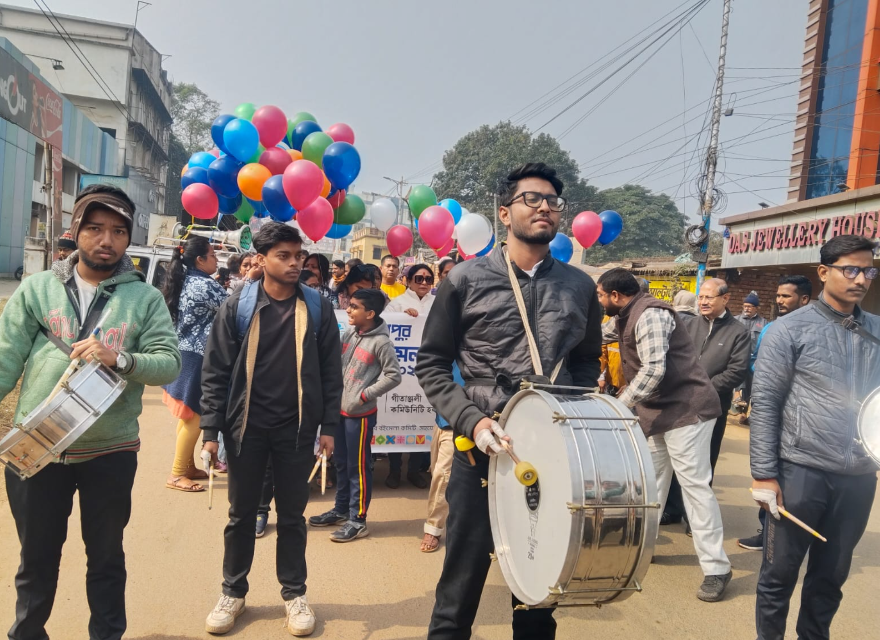 ব্যান্ডের তালে তালে পা মেলান কয়েকশত মানুষেরা।