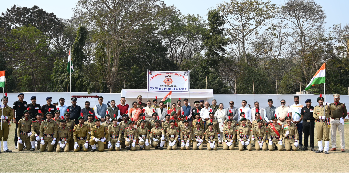 নিজস্ব সংবাদদাতা : ২৬ শে জানুয়ারি সোমবার আইআইটি খড়গপুর তার ক্যাম্পাসে ডিন, শিক্ষক, কর্মকর্তা, কর্মচারী এবং শিক্ষার্থীদের উপস্থিতিতে গভীর মর্যাদা ও দেশপ্রেমের সাথে ভারতের ৭৭তম প্রজাতন্ত্র দিবস উদযাপন করলো। এই বছরের উদযাপনটি বিশেষভাবে তাৎপর্যপূর্ণ ছিল, কারণ আইআইটি খড়গপুর তার প্ল্যাটিনাম জয়ন্তী—জাতি গঠনে ৭৫ বছরের শ্রেষ্ঠত্ব—এবং ‘বন্দে মাতরম’-এর ১৫০ বছর পূর্তি উদযাপন করে চলেছে ।