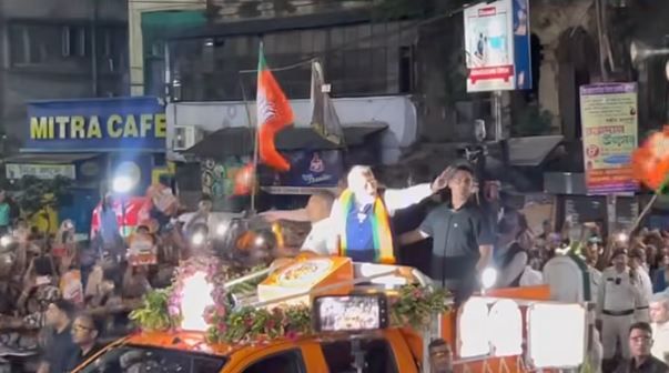নিজস্ব সংবাদদাতা : রবিবার, ২৬ এপ্রিল —উত্তর ২৪ পরগনার ঠাকুরনগর ও হুগলির হরিপালে জোড়া জনসভা শেষ করে কলকাতায় পৌঁছলেন নরেন্দ্র মোদী। উত্তর কলকাতার রাস্তায় তাঁর রোডশো ঘিরে তৈরি হল নজিরবিহীন উন্মাদনা। হাতে দলীয় পতাকা, মুখে ‘মোদী-মোদী’ স্লোগান—রাস্তার দু’ধারে হাজার হাজার মানুষের ঢল নামতে দেখা গেল।এই বর্ণাঢ্য রোডশো শুরু হয় বি.কে. পাল অ্যাভিনিউ থেকে। সুসজ্জিত হুডখোলা গাড়িতে চড়ে তিনি খান্না ক্রসিং-এর দিকে অগ্রসর হন। কয়েক কিলোমিটার জুড়ে এই যাত্রাপথে অসংখ্য মানুষের অভিবাদন গ্রহণ করেন তিনি।শহরের বিভিন্ন প্রান্ত থেকে মানুষ ভিড় জমায় একঝলক প্রধানমন্ত্রীর দর্শন পেতে।