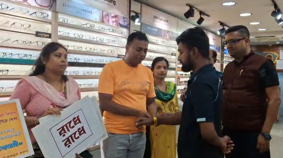 নিজস্ব সংবাদদাতা : প্রথম দফার ভোটের দিনই কলকাতায় বিক্ষোভের পথে হাঁটল Akhil Bharat Hindu Mahasabha। অভিযোগের কেন্দ্রবিন্দুতে Lenskart—ধর্মীয় ভাবাবেগে আঘাতের ইস্যুতে টালিগঞ্জ ও দক্ষিণ কলকাতার একাধিক শোরুমের সামনে প্রতিবাদে নামে সংগঠনটি।সংগঠনের রাজ্য সভাপতি Chandrachur Goswami-এর নেতৃত্বে কর্মীরা বিভিন্ন শোরুমে গিয়ে কর্মীদের কপালে তিলক পরান এবং হাতে ধর্মীয় সুতো বাঁধেন।