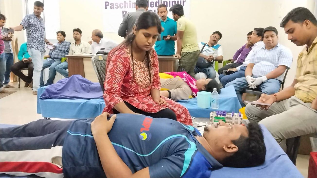পশ্চিম মেদিনীপুর সেখ ওয়ারেশ আলী : শুধু সাংবাদিকদের খবর করা কাজ নয়, সারা বছর বিভিন্নভাবে মানুষের পাশে থাকতে সচেষ্টা থাকে মেদিনীপুর প্রেস ক্লাবের সাংবাদিকরা। এক ফোঁটা রক্ত পেতে ছুটতে হচ্ছে রোগীর পরিবারকে এই ব্লাড ব্যাঙ্ক থেকে অন্য ব্লাড ব্যাঙ্কে। আর এই পরিস্থিতিতে রক্তের সংকট মেটাতে একটি ছোট্ট ক্ষুদ্র রক্তদান শিবিরের আয়োজন করা হল শনিবার পশ্চিম মেদিনীপুর প্রেস ক্লাবের পক্ষ থেকে। মেদিনীপুর শহরের বার্জটাউনের স্বরবর্ণ ভবনে প্রেসক্লাব আয়োজিত এই রক্তদান শিবিরে রক্তদান করেন ৩৫ জন সাংবাদিক ও সাংবাদিকদের পরিবারের সদস্যরা। রক্তদান শিবিরে প্রধান অতিথি হিসেবে উপস্থিত ছিলেন জেলাশাসক খুরশিদ আলী কাদরী, জেলার মুখ্য স্বাস্থ্য আধিকারিক ডাঃ সৌম্য শংকর সরঙ্গী, হাসপাতাল সুপার জয়ন্ত কুমার রাউত, সহ প্রেসক্লাবের সমস্ত সদস্যবৃন্দ। ক্লাবের সম্পাদক সমীর মন্ডল বলেন সামাজিক দায়বদ্ধতাকে সামনে রেখেই প্রেসক্লাবের এই উদ্যোগ। ২০১৩ সালে গঠিত হয়েছিল এই প্রেসক্লাব। চলতি বছর মিলে মোট আমরা ৪ বার রক্তদান শিবির করা হচ্ছে পশ্চিম মেদিনীপুর প্রেস ক্লাব।জেলাশাসক খুরশিদ আলী কাদরী বলেন পশ্চিম মেদিনীপুর প্রেসক্লাব বরাবরই বিভিন্ন আপদে-বিপদে মানুষের পাশে দাঁড়িয়েছে। সম্প্রতি ঘটে যাওয়া করমন্ডল দুর্ঘটনাতে ও মানুষের পাশে বুক চিতিয়ে দাঁড়িয়েছিল এই পশ্চিম মেদিনীপুর প্রেস ক্লাবের সদস্যরা। রক্তদান শিবিরের মাধ্যমে নিজেদের কে সামাজিক দায়বদ্ধতার পরিচয় দিল পশ্চিম মেদিনীপুর প্রেস ক্লাব।