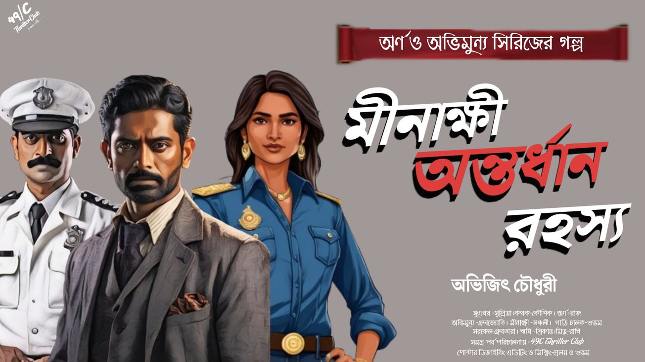 " মীনাক্ষী অন্তর্ধান রহস্য" অভিজিৎ চৌধুরী লেখা রহস্যময় গল্পের সম্প্রচার হবে আজ ইউটুবে"49C Thrillers club"অডিও স্টেশন থেকে।অর্ণ সেন ডিটেকটিভ, সহকারী অভিমন্যু সেন।আর তাঁদের রহস্য সমাধানের জন্য ডাকেন এ সি পি সরখেল সাহেব।অর্ণের স্কুল জীবনের বন্ধু সরখেল সাহেব।মীনাক্ষী পেশায় ক্রাইম ব্রাঞ্চের সঙ্গে যুক্ত।বিয়ে ভাঙছে একের পর এক। যাঁকে বিয়ে করেন একই সঙ্গে ডিভোর্সের কাগজও তৈরি থাকে।খুন হচ্ছে পর পর।বেশীর ভাগই মীনাক্ষীর প্রাক্তন প্রেমিকেরা।কেন! তারপর একদিন মীনাক্ষীও হারিয়ে যায়। কি করে পাওয়া যায় তাকে শেষমেশ! আজ রাত দশটায় অভিজিৎ চৌধুরী লেখা রহস্য গল্পের সম্প্রচার হবে ইউটুবে"49C Thrillers club"অডিও স্টেশন থেকে।