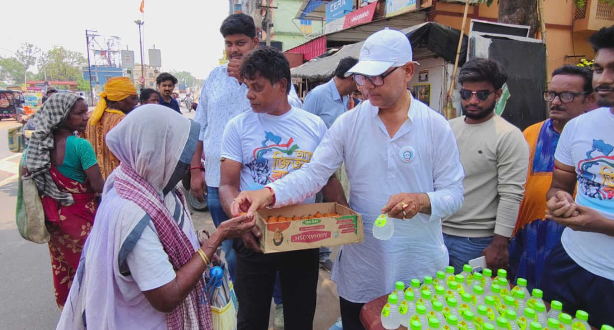 তবে শুধু শুভেচ্ছা বিনিময়েই থেমে থাকেননি তিনি, দিনটিকে আরও মানবিক করে তুলতে হাতে নেন এক ব্যতিক্রমী উদ্যোগ।পথচলতি মানুষ, দোকানদার ও স্থানীয় বাসিন্দাদের হাতে তিনি লাড্ডু তুলে দেন নববর্ষের মিষ্টি শুভেচ্ছা হিসেবে। পাশাপাশি গত কয়েকদিনের তীব্র গরম ও অস্বস্তিকর আবহাওয়ার কথা মাথায় রেখে সাধারণ মানুষের মধ্যে গ্লুকোজ ও ORS বিতরণ করা হয়, যাতে উৎসবের দিনেও সবাই সুস্থ ও সতেজ থাকতে পারেন।এই উদ্যোগ ঘিরে সাধারণ মানুষের মধ্যেও দেখা যায় প্রবল উৎসাহ ও উচ্ছ্বাস।