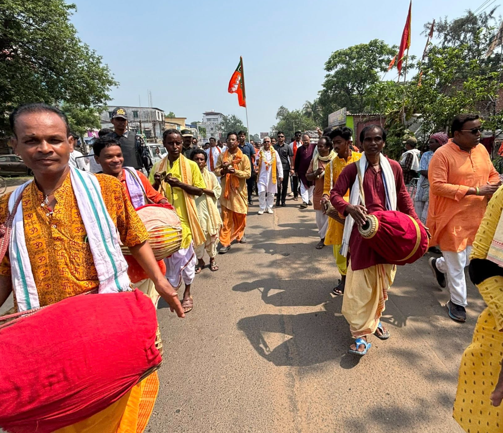 নিজস্ব সংবাদদাতা : বাংলার নতুন বছরকে সামনে রেখে পরিবর্তনের বার্তা আরও জোরালো করলেন বিজেপি প্রার্থী দিলীপ ঘোষ। পয়লা বৈশাখের শুভ সূচনায় খোল-কীর্তনের তালে নেচে, কর্মী-সমর্থকদের সঙ্গে কাঁধে কাঁধ মিলিয়ে তিনি অংশ নিলেন এক বিশেষ নববর্ষ শোভাযাত্রায়, যা ঘিরে খড়্গপুরে তৈরি হয় উৎসবমুখর আবহ।এই বর্ণাঢ্য শোভাযাত্রা শুরু হয় খড়্গপুর কলেজ থেকে, শেষ হয় খড়্গপুর থানার সামনে। নববর্ষ উপলক্ষে আয়োজিত এই বিশেষ পদযাত্রার সবচেয়ে উল্লেখযোগ্য দিক ছিল—পুরো অনুষ্ঠানটি ছিল মহিলা পরিচালিত। টোটো প্রচার থেকে শুরু করে শোভাযাত্রার সুষ্ঠু ব্যবস্থাপনা, এমনকি শেষের সাংস্কৃতিক অনুষ্ঠান পর্যন্ত সবকিছুই দক্ষতার সঙ্গে সামলেছেন মহিলারা।