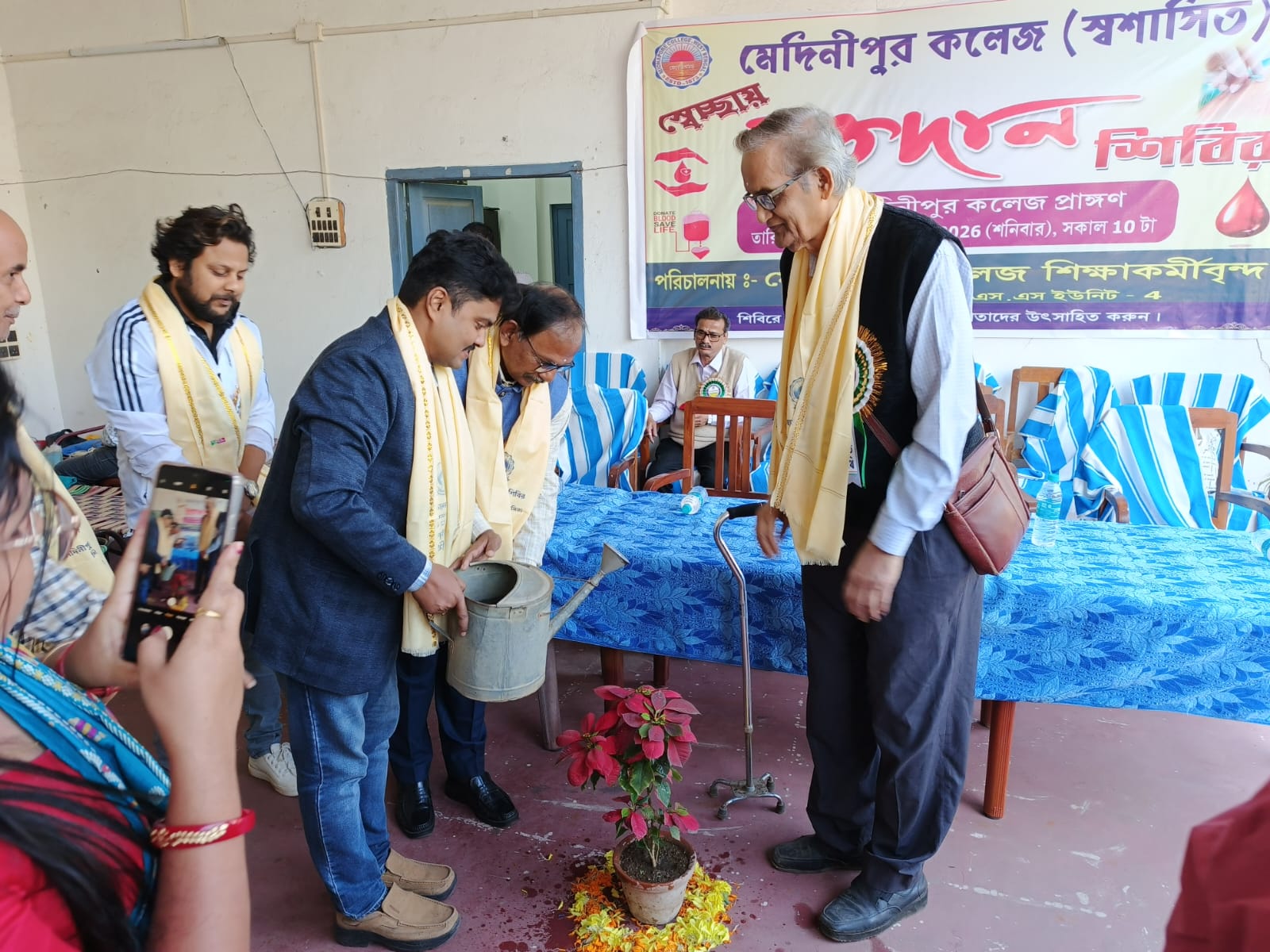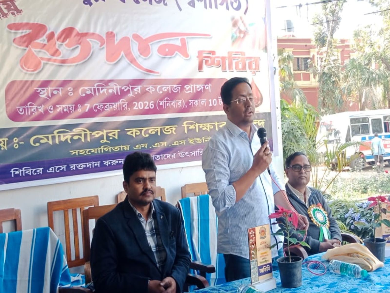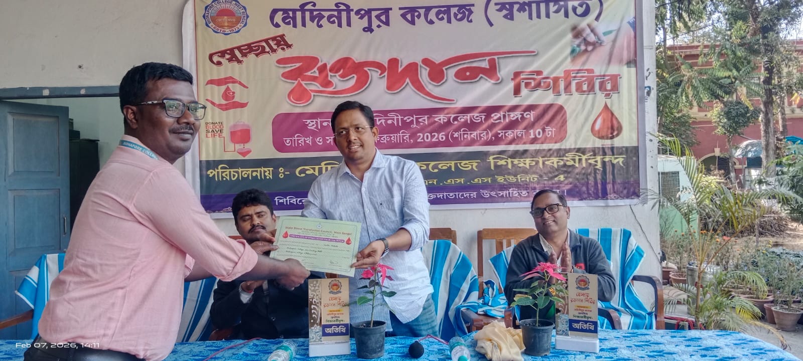 নিজস্ব সংবাদদাতা: সমাজসেবা, মানবিকতা ও পরিবেশ সচেতনতার অনন্য বার্তা নিয়ে আজ মেদিনীপুর কলেজে আয়োজিত হলো এক ব্যতিক্রমী রক্তদান শিবির। কলেজের শিক্ষাকর্মীদের উদ্যোগে ও NSS ইউনিট-৪ এর সহযোগিতায় অনুষ্ঠিত এই কর্মসূচি উৎসাহ-উদ্দীপনা ও আন্তরিক অংশগ্রহণে সাফল্যের সঙ্গে সম্পন্ন হয়। মেদিনীপুর কলেজের অধ্যক্ষ ডক্টর অসিত পণ্ডার দিকনির্দেশনা ও অনুপ্রেরণায় মানবকল্যাণে নিবেদিত এই উদ্যোগ বিশেষ তাৎপর্য বহন করে।