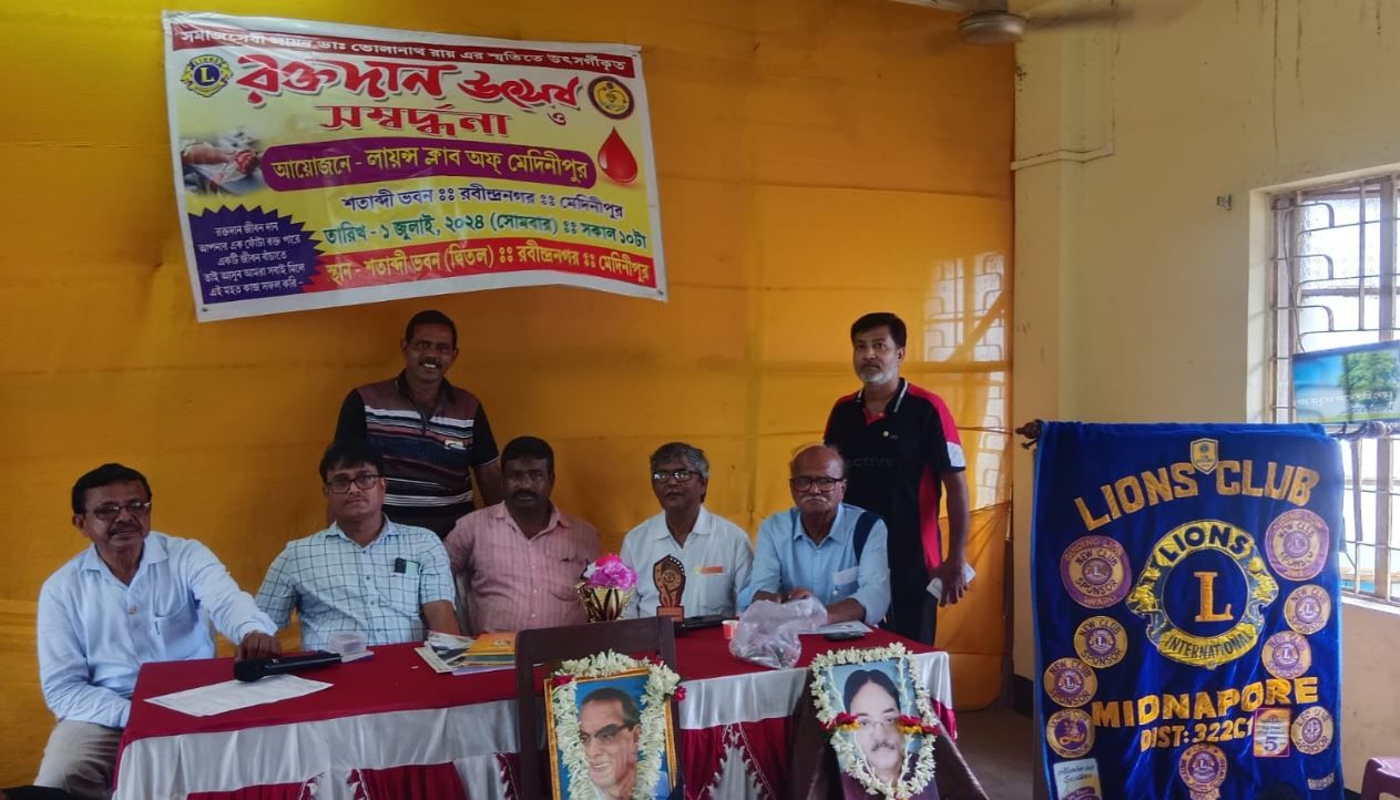 পশ্চিম মেদিনীপুর নিজস্ব সংবাদদাতা : লায়ন্স ক্লাবের উদ্যোগে অনুষ্ঠিত হলো রক্তদান শিবির।চিকিৎসক দিবসে প্রয়াত চিকিৎসক ভোলানাথ রায়ের উদ্দেশ্যে রক্তদান শিবির আয়োজন করে লায়ন্স ক্লাব অব মিডনাপুর। মেদিনীপুর শহরের রবীন্দ্রনগরে ক্লাবের নিজস্ব ভবন শতাব্দী ভবনে শিবিরের আয়োজন করা হয়। ক্লাবের পক্ষ থেকে ডাঃ বিধানচন্দ্র রায় ও ডাঃ ভোলানাথ রায়ের ছবিতে মাল্যদান করে শ্রদ্ধার্ঘ্য জানানো হয়। সম্বর্ধিত করা হয় ১৫৭ বার রক্তদানকারী জয়ন্ত মুখার্জী, ১২৫ বার রক্তদানকারী অসীম ধর ও ৫০ বার রক্তদানকারী আশিস বাগ, ৩৪ বারের রক্তদানকারী অরিন্দম ভৌমিককে।রক্তদান করেন সুনীল বিশ্বাস, মানি মির্জা, সঞ্জয় দে, অর্ণব দাহ সহ ৪০ জন। সমগ্র অনুষ্ঠান পরিচালনায় তৎপর ছিলেন - মেদিনীপুর লায়ন্স ক্লাবের প্রবীণ সদস্য লায়ন- পিনাক বিজয় চক্রবর্তী, সভাপতি - লায়ন রাজপ্রসাদ মাহাতো, কোষাধ্যক্ষ - লায়ন কৌশিক দত্ত সহ লায়ন বিমল ভট্টাচার্য, লায়ন আশিস বাগ, লায়ন দীপক সামন্ত সহ অন্যান্য লায়ন সদস্য বৃন্দ । উপস্থিত ছিলেন সমাজকর্মী সুমন চ্যাটার্জী, রক্তদান আন্দোলনের কর্মী শিক্ষক সুদীপ কুমার খাঁড়া প্রমুখ। শিবিরে রক্তদান করেন চল্লিশ জন রক্তদাতা।রক্তসংগ্রহ করেন ডেবরা ব্লাড সেন্টার কর্তৃপক্ষ।