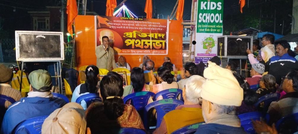 পশ্চিম মেদিনীপুর সেখ ওয়ারেশ আলী : বাংলাদেশের সংখ্যালঘু হিন্দুদের উপর নির্মম অত্যাচার, অবাধ লুঠপাট, অগ্নি সংযোগ, ও হিন্দু সন্ন্যাসী চিন্ময় কৃষ্ণ প্রভুর নির্শত মুক্তির দাবিতে মেদিনীপুরে প্রতিবাদ পথসভা বাঙালি হিন্দু সুরক্ষা সমিতির । উল্লেখ্য বাংলাদেশের পরিস্থিতির প্রতিবাদে রাজ্যের বিভিন্ন জায়গায় আন্দোলন শুরু হয়েছে, আর সেই আন্দোলনে যুক্ত হল মেদিনীপুরের নাম। মেদিনীপুরের বীর বিপ্লবী শহীদ ক্ষুদিরাম বসুর জন্মদিনে তার প্রতিকৃতিতে মাল্যদান এর মধ্য দিয়ে, শহরের পঞ্চুরচকে এদিনের এই প্রতিবাদ পথসভা শুরু হয় । এদিনের এই পথ সভায় হাজির ছিলেন বিজেপি মুখপাত্র দেবজিৎ সরকার সহ মেদিনীপুর শহরের হিন্দু সমাজের বিশিষ্টরা। প্রত্যেকেই বাংলাদেশে হিন্দু সমাজের মানুষের উপর যে নির্যাতন চলছে তার প্রতিবাদের সরব হন । পাশাপাশি চিন্ময়কৃষ্ণ প্রভুর নিঃশর্ত জামিনের দাবিও তোলা হয় এদিনের এই পথসভা থেকে ।
