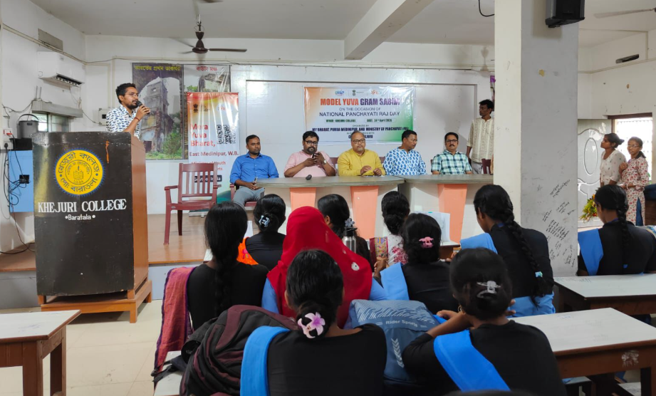 নিজস্ব সংবাদদাতা : গ্রামীণ প্রশাসনকে আরও স্বচ্ছ, শক্তিশালী ও অংশগ্রহণমূলক করে তুলতে বড় উদ্যোগ নিল কেন্দ্র। Ministry of Panchayati Raj এবং MY Bharat-এর যৌথ উদ্যোগে ‘জাতীয় পঞ্চায়েত রাজ দিবস’ উপলক্ষে দেশজুড়ে আয়োজন করা হয় ‘মডেল যুব গ্রাম সভা’। তারই অংশ হিসেবে পশ্চিমবঙ্গের প্রতিনিধিত্ব করে পূর্ব মেদিনীপুরে এই কর্মসূচি সফলভাবে সম্পন্ন হয়েছে।Care of Khejuri-এর ব্যবস্থাপনায় এবং ‘মাই ভারত’-এর পূর্ব মেদিনীপুর জেলা ইউনিটের সহযোগিতায় আয়োজিত এই সভায় খেজুরী ও নন্দীগ্রাম এলাকার বিভিন্ন প্রান্ত থেকে প্রায় ৫০ জন যুবক-যুবতী অংশগ্রহণ করেন।