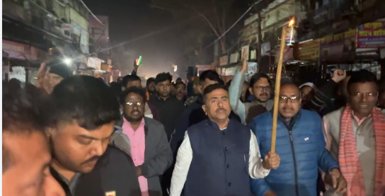 পরিকল্পিতভাবে আমাদের উপর হামলা করা হয়েছে এবং আমাদের দু’টি গাড়িতে ভাঙচুর চালানো হয়েছে।”তিনি আরও অভিযোগ করেন, রাজ্যে বিরোধীদের কণ্ঠরোধ করতে শাসকদল হিংসার পথ বেছে নিচ্ছে এবং পুলিশ প্রশাসন কার্যত নীরব দর্শকের ভূমিকা পালন করছে। দীর্ঘ ছয় ঘণ্টার অবস্থান বিক্ষোভের পর রাত প্রায় ১টা ৪০ মিনিটে শুভেন্দু অধিকারী চন্দ্রকোনা রোড পুলিশ ফাঁড়ি থেকে বেরিয়ে আসেন। এরপর তিনি দলীয় কর্মী ও সমর্থকদের সঙ্গে নিয়ে একটি প্রতিবাদ মশাল মিছিল করেন। তারী সঙ্গে শাসকদলের বিরুদ্ধে স্লোগানে মুখরিত হয়।ঘটনাকে কেন্দ্র করে এখনও চন্দ্রকোনা রোড ও সংলগ্ন এলাকায় উত্তেজনা রয়েছে।