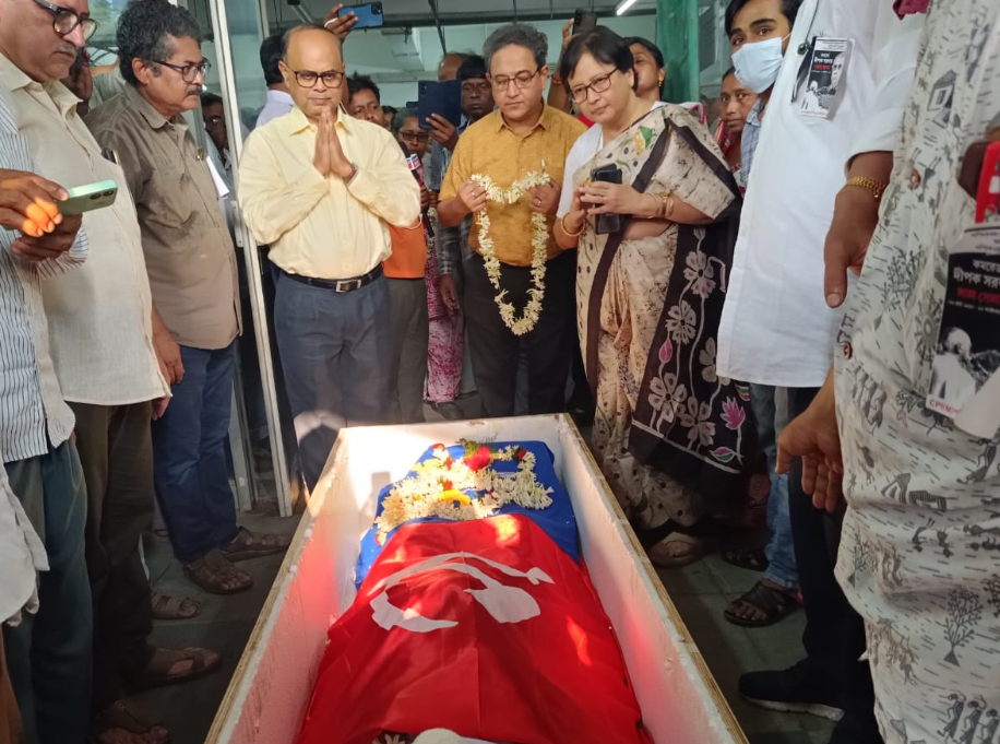 মঙ্গলবার সকালে প্রথমে তাঁর মরদেহ যায় তাঁর গড়ে তোলা বিদ্যাসাগর ইন্সটিটিউট অব হেলথে। সেখান থেকে মরদেহ পৌঁছায় তাঁর গড়ে তোলা আর এক প্রতিষ্ঠান মেদিনীপুর স্পোর্টস ডেভেলপমেন্ট একাডেমীতে। সেখানে তাঁকে শ্রদ্ধা জানান একাডেমীর কর্মকর্তা ও বিভিন্ন ক্রীড়া ও সাংস্কৃতিক সংগঠনের প্রতিনিধিরা।এর মরদেহ মেদিনীপুর কলেজে আসে । সেখানে শ্রদ্ধা জানান কলেজের ভারপ্রাপ্ত অধ্যক্ষ অধ্যাপক সত্যরঞ্জন ঘোষ সহ অন্যান্যরা।এর পর মরদেহ জেলা সিপিআইএম কার্যালয়ে নিয়ে আসা হয় সেখানে শ্রদ্ধা জানান সিপিআইএম এর রাজ্য সম্পাদক মহম্মদ সেলিম,রাজ্যানেতা ডাঃ সূর্যকান্ত মিশ্র,শ্রীদীপ ভট্টাচার্য,পলাশ দাশ,অভয় মুখার্জি, সিপিআইএম এর জেলা সম্পাদক বিজয় পাল, প্রাক্তন দুই জেলা সম্পাদক তরুণ রায় ও সুশান্ত ঘোষ,কৃষকসভার জেলা সম্পাদক মেঘনাদ ভূঁইয়া,সিটুর জেলা সম্পাদক গোপাল প্রামাণিক সহ সিপিআইএম অন্যান্য জেলা নেতৃত্ব ও এরিয়া কমিটির নেতৃবৃন্দ এবং দলের বিভিন্ন গণসংগঠনের নেতৃবৃন্দ।