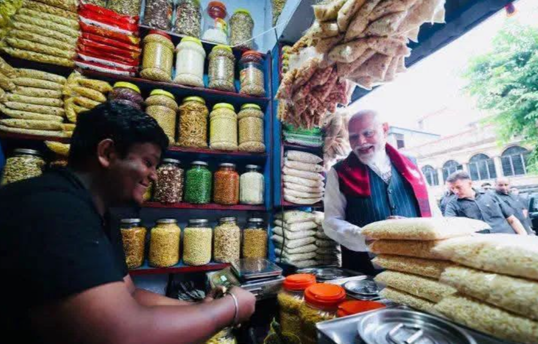 দোকানে ঢুকেই হাসিমুখে মোদী বলেন, “ভাই, আপনার দোকানের ঝালমুড়ি খাওয়ান, কত দাম?” এরপর নিজের পকেট থেকে ১০ টাকা বের করে দেন। বিক্রম প্রথমে টাকা নিতে না চাইলেও, প্রধানমন্ত্রী জোর করেই মূল্য পরিশোধ করেন। ঝালমুড়ি বানানোর সময় পেঁয়াজ দেবেন কি না জানতে চাইলে মোদীর রসিক জবাব—“হ্যাঁ, পেঁয়াজ খাই, শুধু নুন খাই না”—শুনে হাসির রোল ওঠে উপস্থিত জনতার মধ্যে।