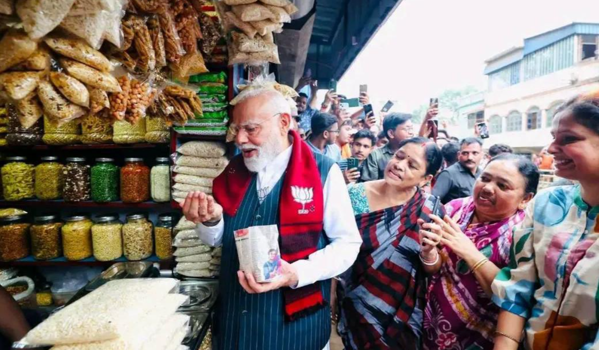 সেখ ওয়ারেশ আলী : রবিবার ১৯ এপ্রিল নির্বাচনের আগে শেষ রবিবার ঝাড়গ্রাম স্টেডিয়ামে জনসভা সেরে বেলদার উদ্দেশ্যে রওনা দেন প্রধানমন্ত্রী Narendra Modi। তবে পথেই ঘটে এক অপ্রত্যাশিত ঘটনা, যা মুহূর্তে চর্চার কেন্দ্রবিন্দু হয়ে ওঠে।ঝাড়গ্রাম শহরের কলেজ মোড়ে আচমকাই নিজের কনভয় থামান তিনি। তারপর হঠাৎই গাড়ি থেকে নেমে ঢুকে পড়েন স্থানীয় ঝালমুড়ি বিক্রেতা বিক্রম কুমার সাউয়ের ছোট্ট দোকানে। দেশের প্রধানমন্ত্রীকে সামনে দেখে প্রথমে হতবাক হয়ে যান বিক্রম। মুহূর্তের মধ্যেই আশপাশে ভিড় জমে যায়—কৌতূহলী মানুষের ঢল আর ক্যামেরার ঝলকানিতে জমে ওঠে এলাকা।