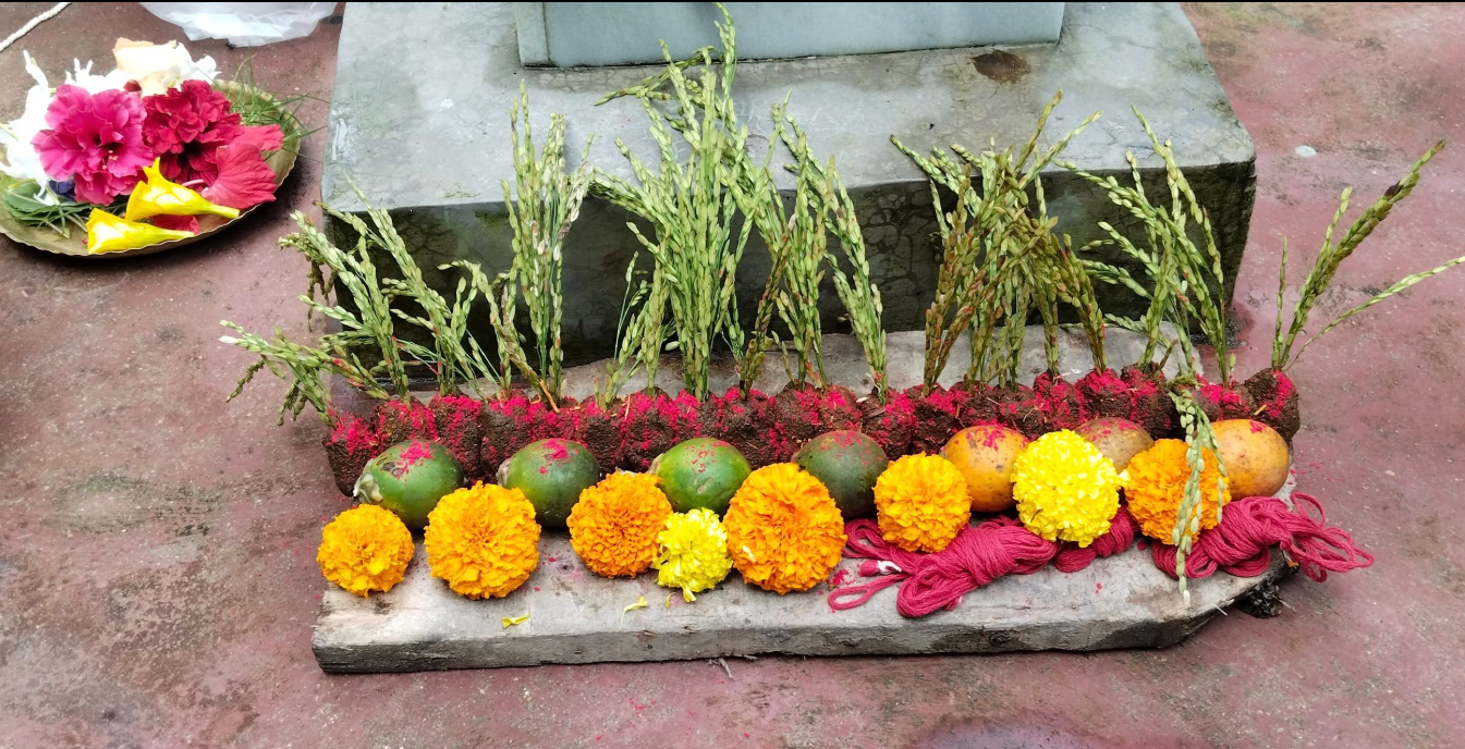 সামনে সাজানো থাকত দুটো থালা। একটি থাকতো গাঁদা ফুল, নতুন ধান, দুর্বা, চন্দন, ধূপ, প্রদীপ ও লক্ষি ঠাকুরকে লাগানো নতুন পোশাক। আর এক থালাতে থাকতো গুড়ের পায়েস, গাওয়া ঘি তে ভাজা বিভিন্ন রকমের গুড়ের পিঠে, সুজি, গোটা মুগ, রম্ভা ও লালআলু সেদ্ধ। তারপর মা ও বাবা চন্দনের ফোঁটা কপালে দিয়ে মাথায় ধান দুর্বা ও ফুল দিয়ে প্রদীপের থালা মাথায় ঠেকান। সঙ্গে উলুধ্বনি ও সংঙ্খধ্বনি দেওয়া হয়। ওইদিন বড় ছেলে বা মেয়ের পালনের দিন হিসেবে গ্রহণ করত বাড়ির সকলেই। ওরা কেউ মুড়ি, রুটি বা পোড়া জিনিস খাবে না, মার বা বকাঝকা কেউ করবে না। যা চাইবে তাই পাবে, ভালমন্দ খাওয়া, নতুন জামা কাপড় সবাই পেত আজও রয়ে গেছে এই অনুষ্ঠান ঝাড়গ্রাম জেলা, পশ্চিম মেদিনীপুর জেলার কেশিয়াড়ি, নারায়ণগড়, পিংলা, মাদপুর, দাঁতন, সবং ইত্যাদি। এছাড়া পূর্ব মেদিনীপুর জেলার কাঁথি, রামনগর, পটাশপুর ব্লকে।
