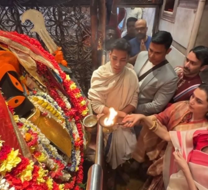 জানা গিয়েছে, কলকাতায় পা রেখেই তিনি প্রথমে ছুটে যান কালীঘাট মন্দিরে। দেবী দুর্গা ও মা কালীর প্রতি তাঁর গভীর ভক্তি বরাবরই পরিচিত, তাই কালীঘাটে পুজো দেওয়াই ছিল তাঁর প্রথম কর্মসূচি।কালীঘাট মন্দিরে সতীপীঠে পুজো দিতে দেখা যায় রানি মুখোপাধ্যায়কে। তাঁর সঙ্গে ছিলেন মাসি তথা জনপ্রিয় অভিনেত্রী দেবশ্রী রায়। মন্ত্রোচ্চারণের মধ্যে অঞ্জলি দিয়ে ভক্তিভরে দেবী আরাধনা করেন তিনি।