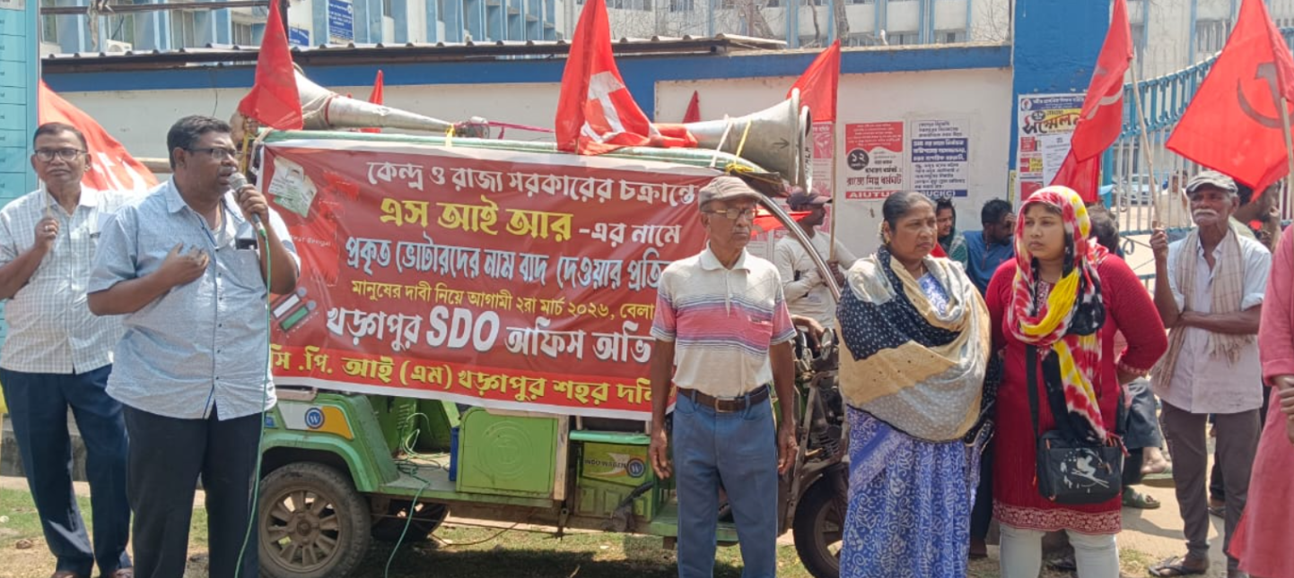 অরিন্দম চক্রবর্তী : খসড়া সংশোধন প্রক্রিয়া (এস আই আর) শেষ হওয়ার পর ২৮ ফেব্রুয়ারি প্রকাশিত সংশোধিত প্রথম চূড়ান্ত ভোটার তালিকা ঘিরে খড়গপুরে তীব্র বিতর্কের সৃষ্টি হয়েছে। তালিকায় একাধিক অসঙ্গতির অভিযোগ তুলে ২ মার্চ সোমবার, খড়গপুরের এসডিও অফিসের সামনে অবস্থান-বিক্ষোভ ও ডেপুটেশন কর্মসূচি পালন করে সিপিএমের খড়গপুর শহর পার্টি।বিক্ষোভ কর্মসূচিতে বক্তব্য রাখেন সিপিএমের জেলা সম্পাদকমণ্ডলীর সদস্য সবুজ ঘোড়াই, জেলা কমিটির সদস্য অমিতাভ দাস, মধুসূদন রায়, স্মৃতিকণা দেবনাথ, কামরুজ্জামান, সিটু নেতা দিলীপ দে ও যুব নেতা সৈয়দ সাদ্দাম আলি সহ অন্যান্য নেতৃবৃন্দ। উপস্থিত ছিলেন কাউন্সিলর জয়দীপ বোস, অসিত সরকার, হরেকৃষ্ণ দেবনাথ ও গুলাম আশিক প্রমুখ।