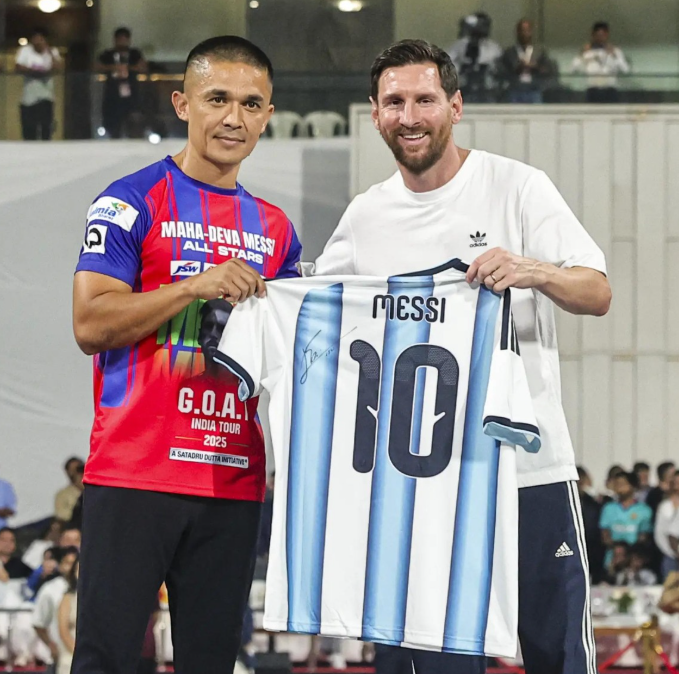 অনুষ্ঠানের বিভিন্ন সময়ে একই মঞ্চে দেখা যায় মেসি, শচীন টেন্ডুলকার ও ভারতের ফুটবলের কিংবদন্তি সুনীল ছেত্রীকে। তিন তারকার উপস্থিতিতে উল্লাসে ফেটে পড়ে পুরো স্টেডিয়াম। ফুটবল আর ক্রিকেটের দুই যুগপুরুষ, দুই ভিন্ন মেরুর আইকন—একই ফ্রেমে। আর সেই মুহূর্তটাই ওয়াংখেড়েকে আলাদা করে দিল।