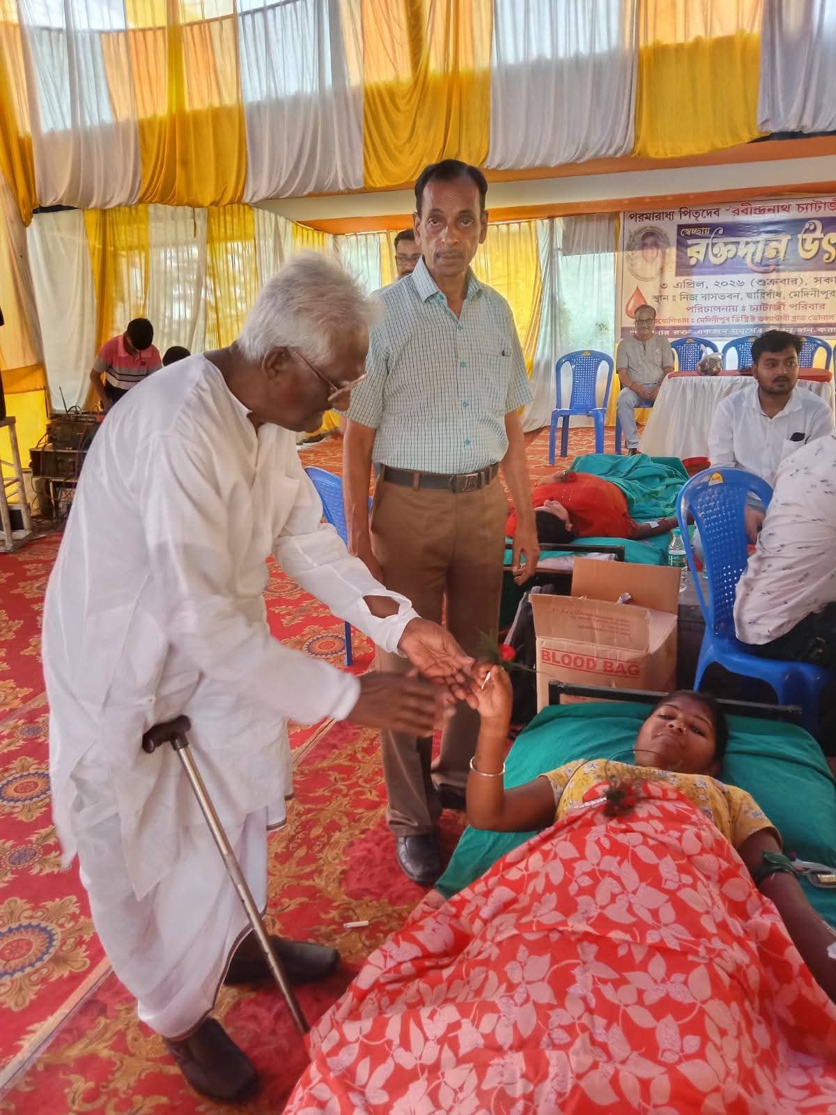 নিজস্ব সংবাদদাতা: মানবসেবাই যে প্রকৃত শ্রদ্ধাঞ্জলি, তারই উজ্জ্বল নজির গড়ল মেদিনীপুর শহরের দ্বারিবাঁধের চ্যাটার্জী পরিবার। বিশিষ্ট সমাজকর্মী প্রয়াত রবীন্দ্রনাথ চ্যাটার্জীর স্মৃতির উদ্দেশ্যে শুক্রবার আয়োজিত স্বেচ্ছায় রক্তদান শিবিরে ৮৪ জন রক্তদাতা রক্তদান করেন। তাঁদের মধ্যে ২০ জন ছিলেন মহিলা রক্তদাতা। মানবিকতার এই উদ্যোগ ঘিরে এলাকাজুড়ে তৈরি হয় আবেগঘন পরিবেশ। চ্যাটার্জী পরিবারের নিজস্ব বাসভবনে অনুষ্ঠিত এই রক্তদান শিবিরে উপস্থিত অতিথি ও রক্তদাতাদের আন্তরিকভাবে স্বাগত জানান প্রয়াত রবীন্দ্রনাথ চ্যাটার্জীর পত্নী শুক্লা চ্যাটার্জী, দুই পুত্র দেবকান্ত চ্যাটার্জী ও রঞ্জন চ্যাটার্জী-সহ পরিবারের অন্যান্য সদস্যরা। ২০২০ সাল থেকে শুরু হওয়া এই মহতী উদ্যোগ এ বছর সপ্তম বর্ষে পদার্পণ করল, যা ইতিমধ্যেই মেদিনীপুর শহরে এক সামাজিক দৃষ্টান্ত হয়ে উঠেছে।