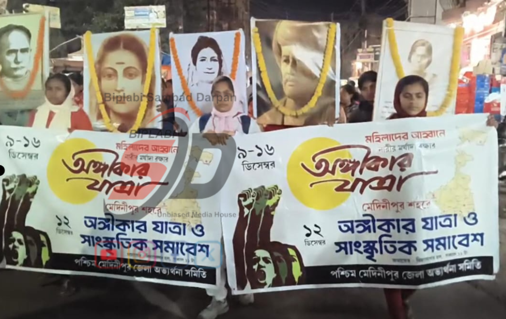 পশ্চিম মেদিনীপুর সেখ ওয়ারেশ আলী : নারী নির্যাতন, ধর্ষণ ও খুনের ঘটনায় গোটা দেশ জুড়ে ক্রমবর্ধমান উদ্বেগের প্রেক্ষিতে অভ্যর্থনা কমিটি পক্ষ থেকে রাজ্যে এক অভিনব প্রতিবাদ কর্মসূচির আয়োজন করা হয়েছে। আগামী ৯ ডিসেম্বর থেকে ১৬ ডিসেম্বর পর্যন্ত অনুষ্ঠিত হবে ‘জাগো নারী জাগো বহ্নিশিখা’ অঙ্গীকার যাত্রা।কোচবিহার, কাকদ্বীপ, পুরুলিয়া ও ঝাড়গ্রাম— এই চারদিক থেকে শুরু হবে যাত্রা।