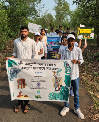 ৪ঠা এপ্রিল, শনিবার মেদিনীপুর বনবিভাগ ও সংশ্লিষ্ট এনজিওগুলির সহায়তায় জামশোল এলাকায় ‘শিকার উৎসবের বিরুদ্ধে সচেতনতা অভিযান’ শীর্ষক এই উদ্যোগ নেওয়া হয়।নেচার ক্লাবের সদস্যা ডঃ Priyanka Haldar Mallik-এর তত্ত্বাবধানে Department of Zoology, Vidyasagar University-এর ছাত্রছাত্রীদের পাশাপাশি বহু আগ্রহী স্বেচ্ছাসেবক এই কর্মসূচিতে অংশগ্রহণ করেন। স্থানীয় বাসিন্দাদের সঙ্গে সরাসরি কথা বলে বন্যপ্রাণ হত্যার ক্ষতিকর প্রভাব, জীববৈচিত্র্য রক্ষার গুরুত্ব এবং আইনি দিকগুলি তুলে ধরা হয়।