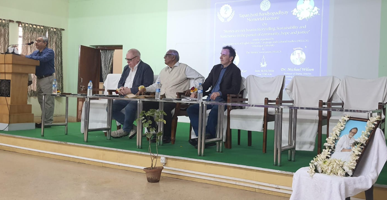 নিজস্ব সংবাদদাতা : বিদ্যাসাগর বিশ্ববিদ্যালয়ের ইংরেজি সাহিত্য, ভাষা ও সংস্কৃতি বিদ্যা বিভাগ (DELLCS) এবং উক্ত বিভাগের প্রাক্তন ছাত্র সংসদের যৌথ উদ্যোগে বি. এন. শাসমল হলে তপন জ্যোতি বন্দ্যোপাধ্যায় স্মারক বক্তৃতা অত্যন্ত সাফল্যের সাথে সম্পন্ন হয়েছে। অনুষ্ঠানের প্রারম্ভে স্বাগত ভাষণ প্রদান করেন বিভাগীয় প্রধান অধ্যাপক জয়জিৎ ঘোষ। একইসাথে তিনি বিদ্যাসাগর বিশ্ববিদ্যালয়ের মাননীয় উপাচার্য অধ্যাপক দীপক কুমার কর-এর পাঠানো শুভেচ্ছাবার্তাটি পাঠ করে শোনান।উক্ত অনুষ্ঠানে উপস্থিত ছিলেন কলা ও বাণিজ্য অনুষদের ডিন অধ্যাপক (ডক্টর) অরিন্দম গুপ্ত, ইংরেজি বিভাগের প্রাক্তন অধ্যাপক (ডক্টর) শঙ্কর প্রসাদ সিংহ, বিদ্যাসাগর বিদ্যাপীঠ বালিকা উচ্চ বিদ্যালয়ের প্রধান শিক্ষিকা তথা প্রয়াত অধ্যাপক তপন জ্যোতি বন্দ্যোপাধ্যায়ের কন্যা স্বাতী বন্দ্যোপাধ্যায় এবং অন্যান্য বিশিষ্ট ব্যক্তিবর্গ।এবারের স্মারক বক্তৃতার মূল বিষয় ছিল “Stories are Not Boasts: Storytelling, Sustainability and Sustenance in the Pursuit of Community, Hope and Justice”। মূল বক্তা হিসেবে উপস্থিত ছিলেন যুক্তরাজ্যের লবরো বিশ্ববিদ্যালয়ের (Loughborough University) নাট্যকলা বিভাগের অধ্যাপক, স্টোরিটেলিং একাডেমির সেক্রেটারি এবং ইউনেস্কো চেয়ার প্রফেসর ডক্টর মাইকেল উইলসন।