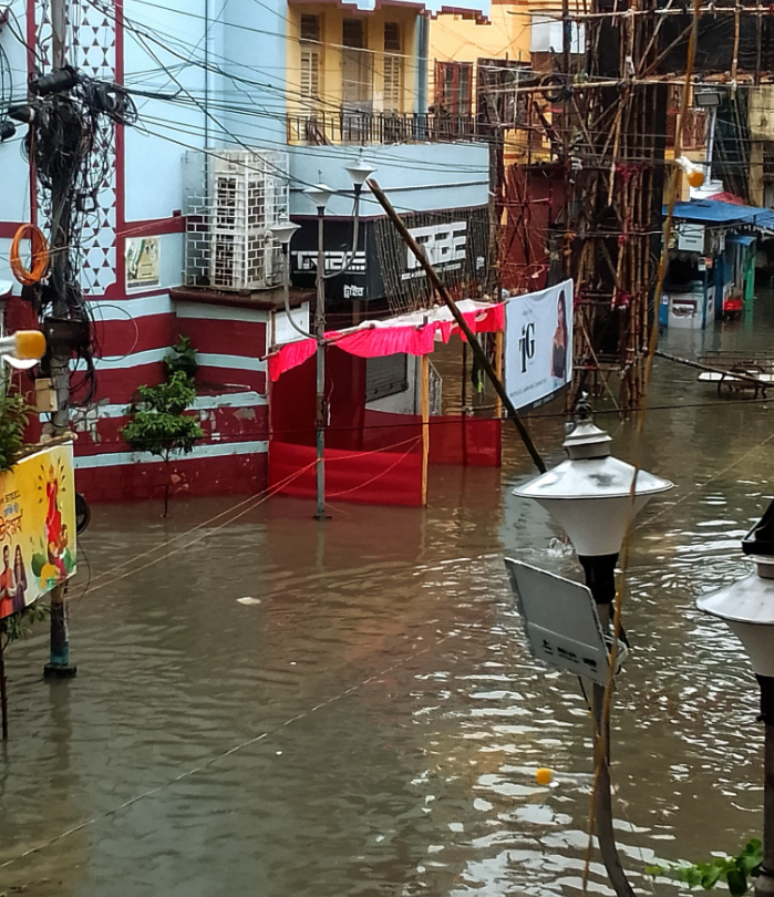 কৌস্তভ মজুমদার : সোমবার রাত্রি থেকে বৃষ্টি শুরু। একনাগাড়ে বৃষ্টি চলছে মঙ্গলবার সকালেও। কয়েকঘণ্টার টানা বৃষ্টিতে ডুবেছে শহর। উত্তর, মধ্য, দক্ষিণ কলকাতা একপ্রকার জলের তলায়। জলমগ্ন গোটা সল্টলেক চত্বর এবং পার্শ্ববর্তী এলাকাও। মঙ্গলবার শহরের দিকে তাকালেই দেখা যাচ্ছে, মানিকতলা থেকে মুদিয়ালি, সর্বত্র কোমর জল। ডুবে গিয়েছে রাস্তা-ঘাট। রাস্তায় দাঁড়িয়ে থাকা গাড়ি, অটো জলের তলায়। লাইনে জল জমে গিয়ে ব্যাহত ট্রেন, মেট্রো চলাচল। কয়েক ঘণ্টার বৃষ্টিতে বিপর্যস্ত জনজীবন। শহরবাসী মনে করতে পারছেন না, প্রতি বর্ষায় কম বেশি জলযন্ত্রণা হলেও, শেষ কবে এই পরিমাণ বৃষ্টির সাক্ষী থেকেছে শহর।