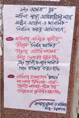 রাজ্যের স্বাস্থ্য অধিকর্তা স্বপন সোরেন এবং হাওড়ার মুখ্য স্বাস্থ্য আধিকারিক কিশলয় দত্ত কে গত ১৬ ই সেপ্টেম্বর ২০২৫ সমস্ত বিষয় অবগত করে , নিজে এবং ওনি সন্তান নিরাপত্তা হীনতায় ভুগছে এই মর্মে লিখিত অভিযোগ জমা দিয়েছেন বি এম ও এইচ পায়েল বিশ্বাস। সেই সঙ্গে তিনি ঘটনার পূঙ্গাঙ্গ তদন্তের আবেদন জানিয়েছেন। তিনি নিজের এবং তার সন্তানের নিরাপত্তা চান। আইনানুসারে কর্মক্ষেত্রে কোনোরকম শারীরিক, মানসিক,যৌন নির্যাতন, হেনস্তার অভিযোগ হলে তৎক্ষণাৎ আইনত হস্তক্ষেপ বাধ্যতামূলক।